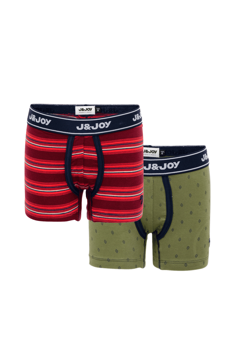 Duo-Boxers Garçon Manitoba Red Stripes & Kaki