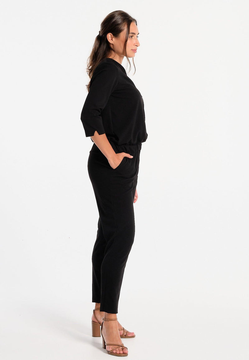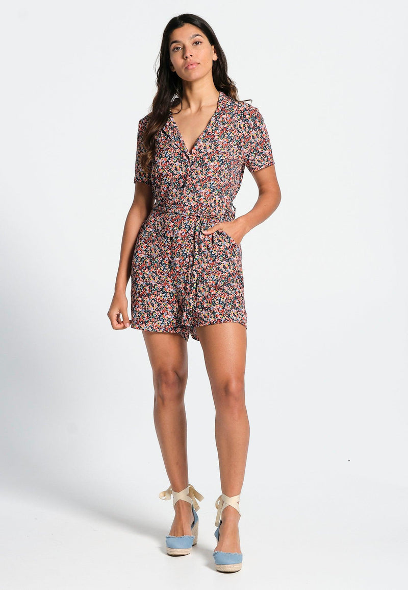 Combinaison femme courte, col châle, ouverture boutonnée à l'avant