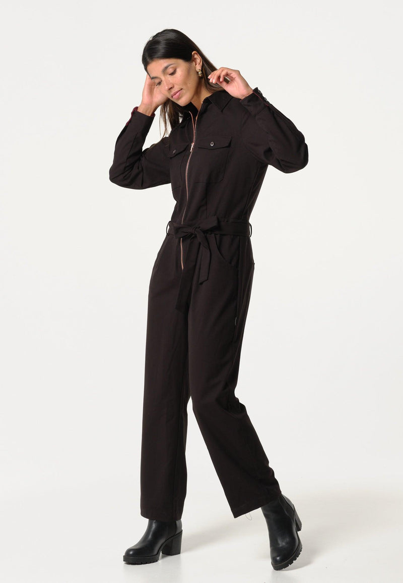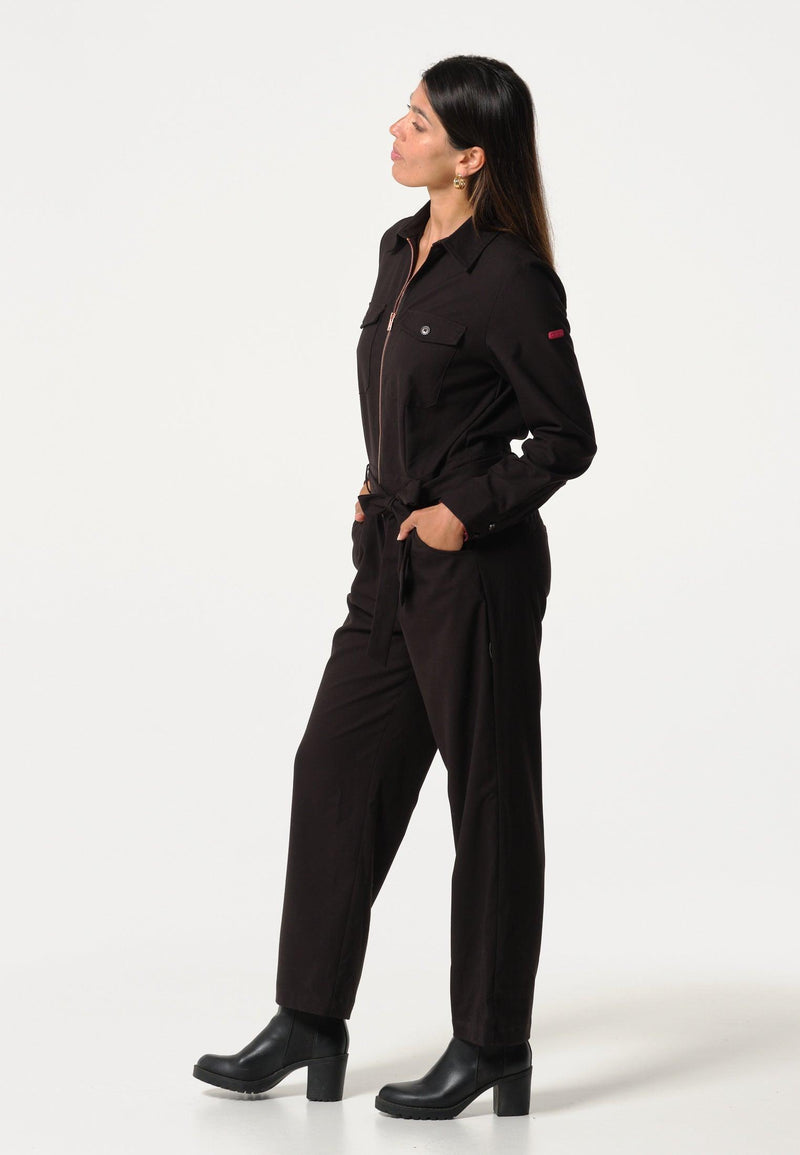 Combinaison femme bleu marine avec tirette et poches poitrine