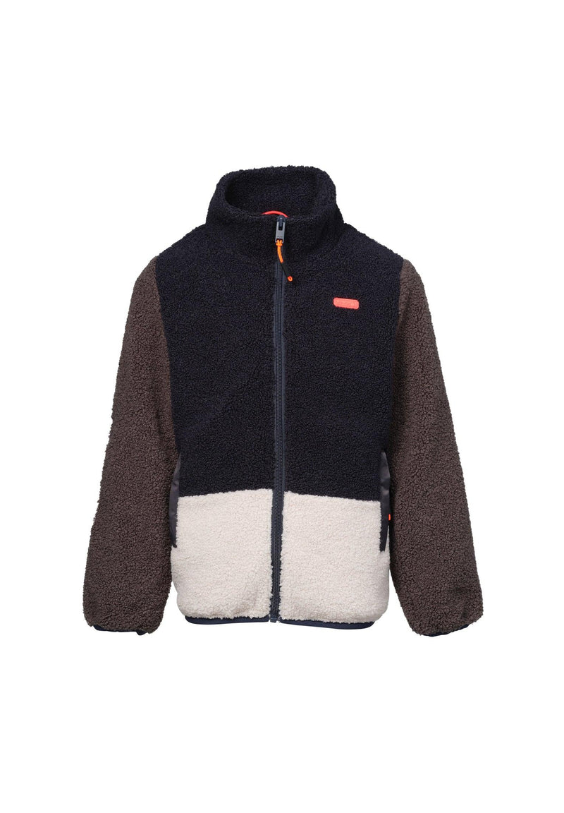 Polar garçon bleu et beige avec tirette et col tombant