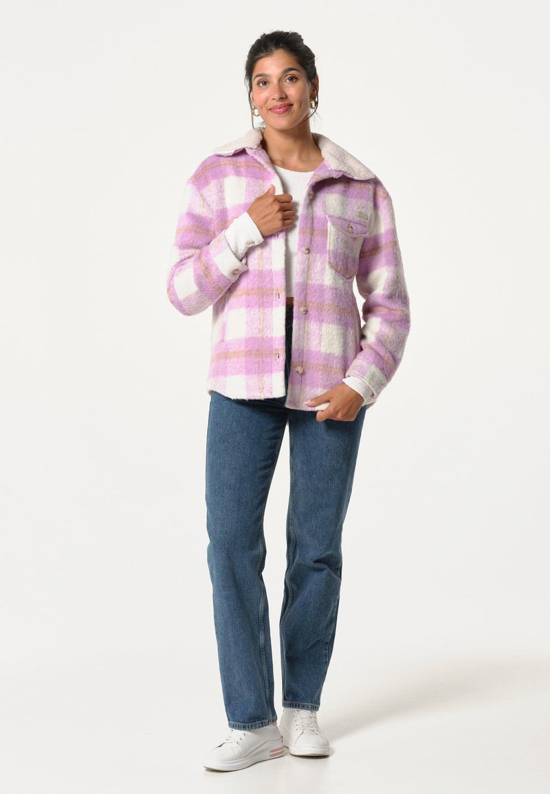 Polar femme à carreaux roses avec col doublé
