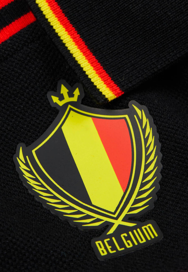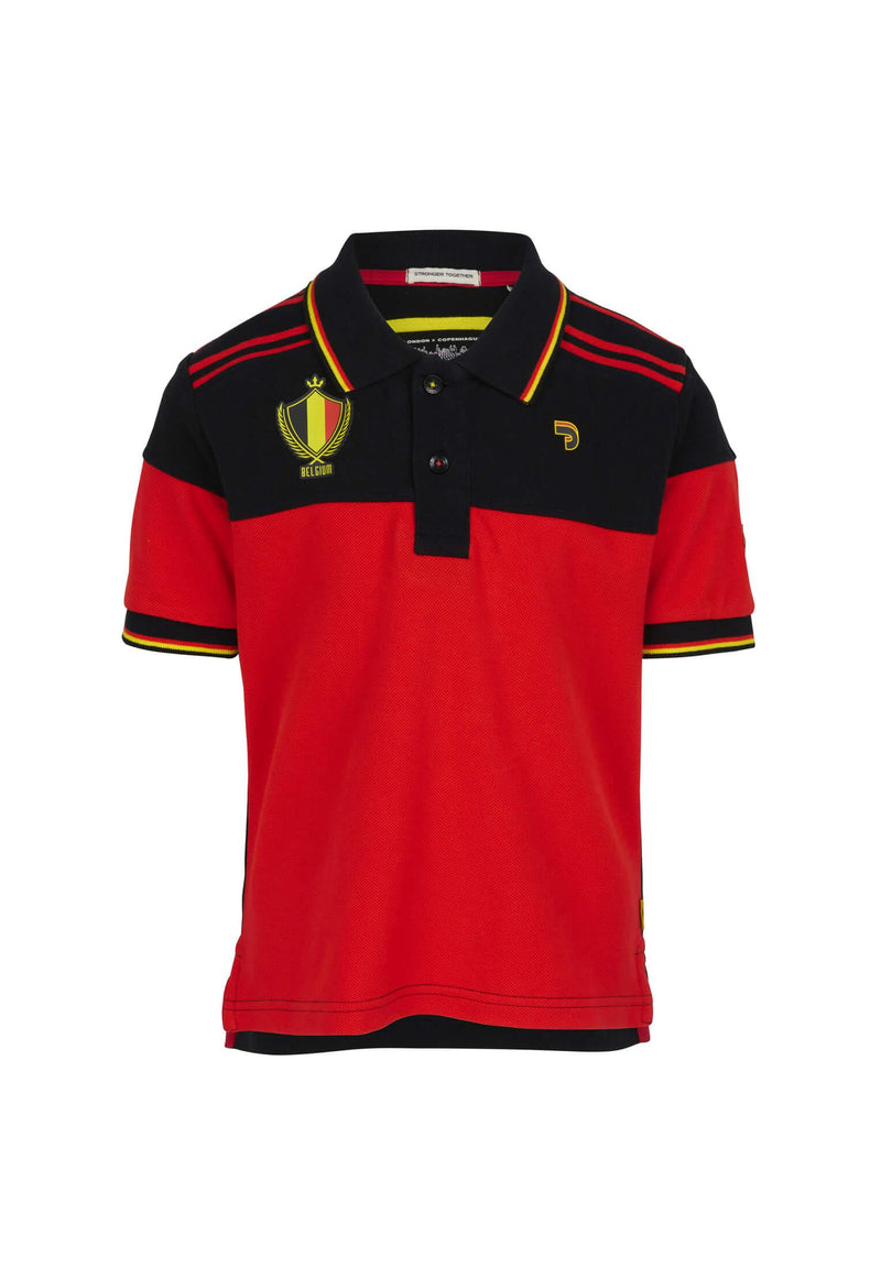 Polo enfant unisexe rouge et noir avec drapeau belge