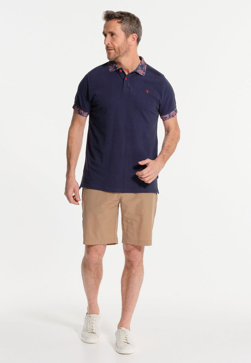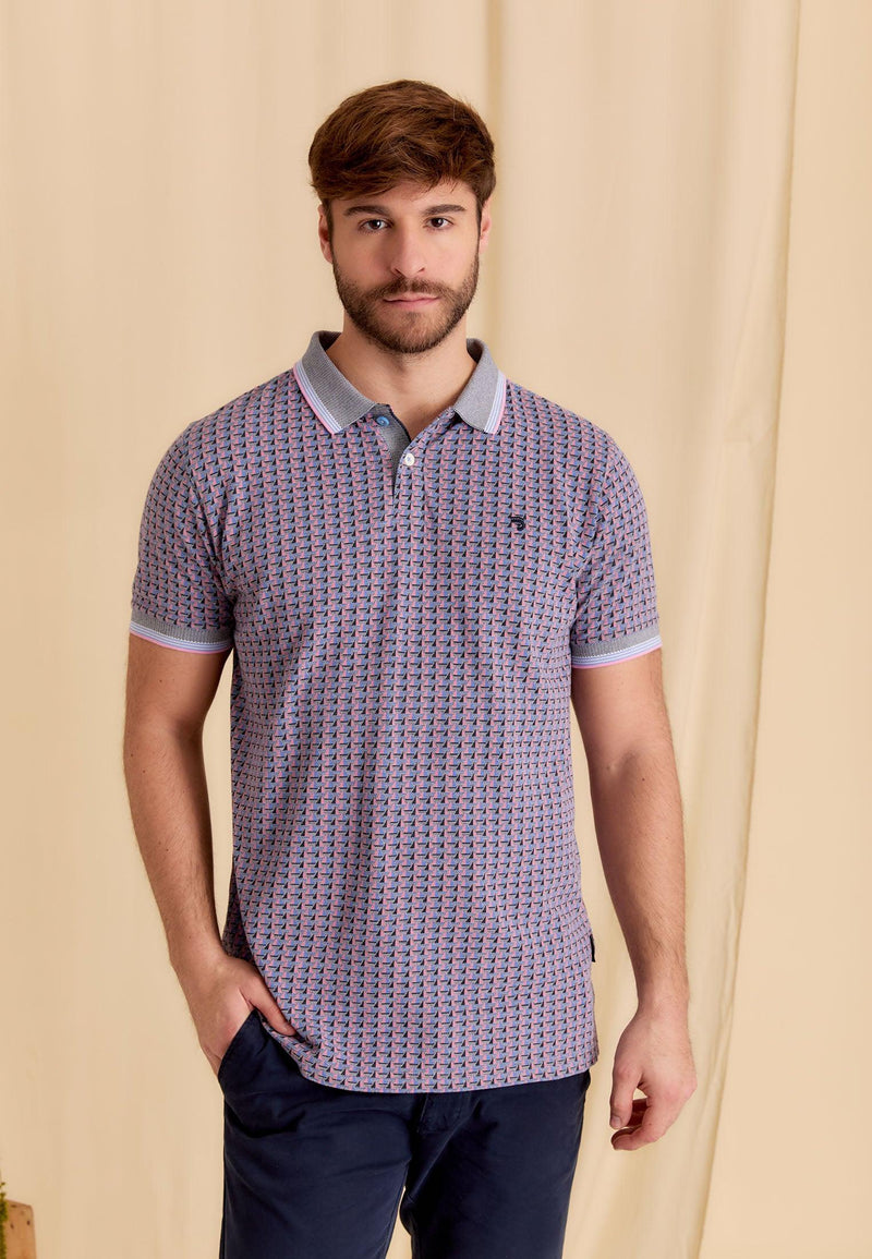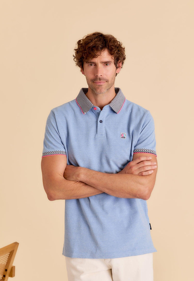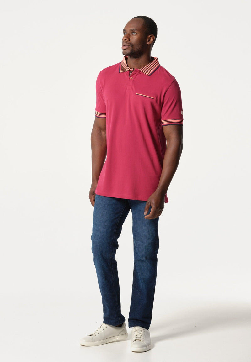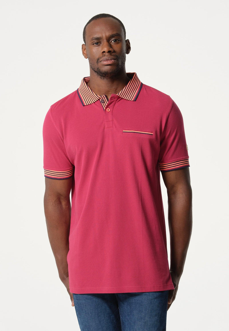 Polo homme bordeaux avec bandes contrastrées sur les manches