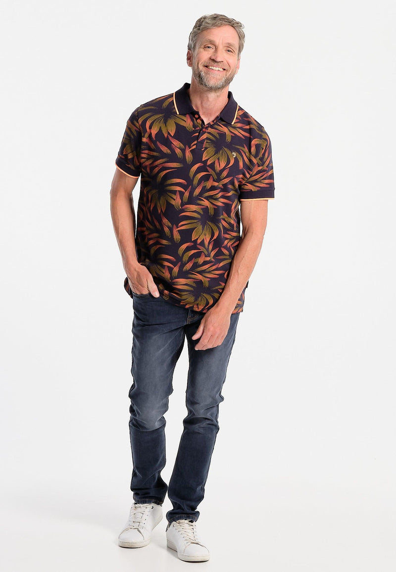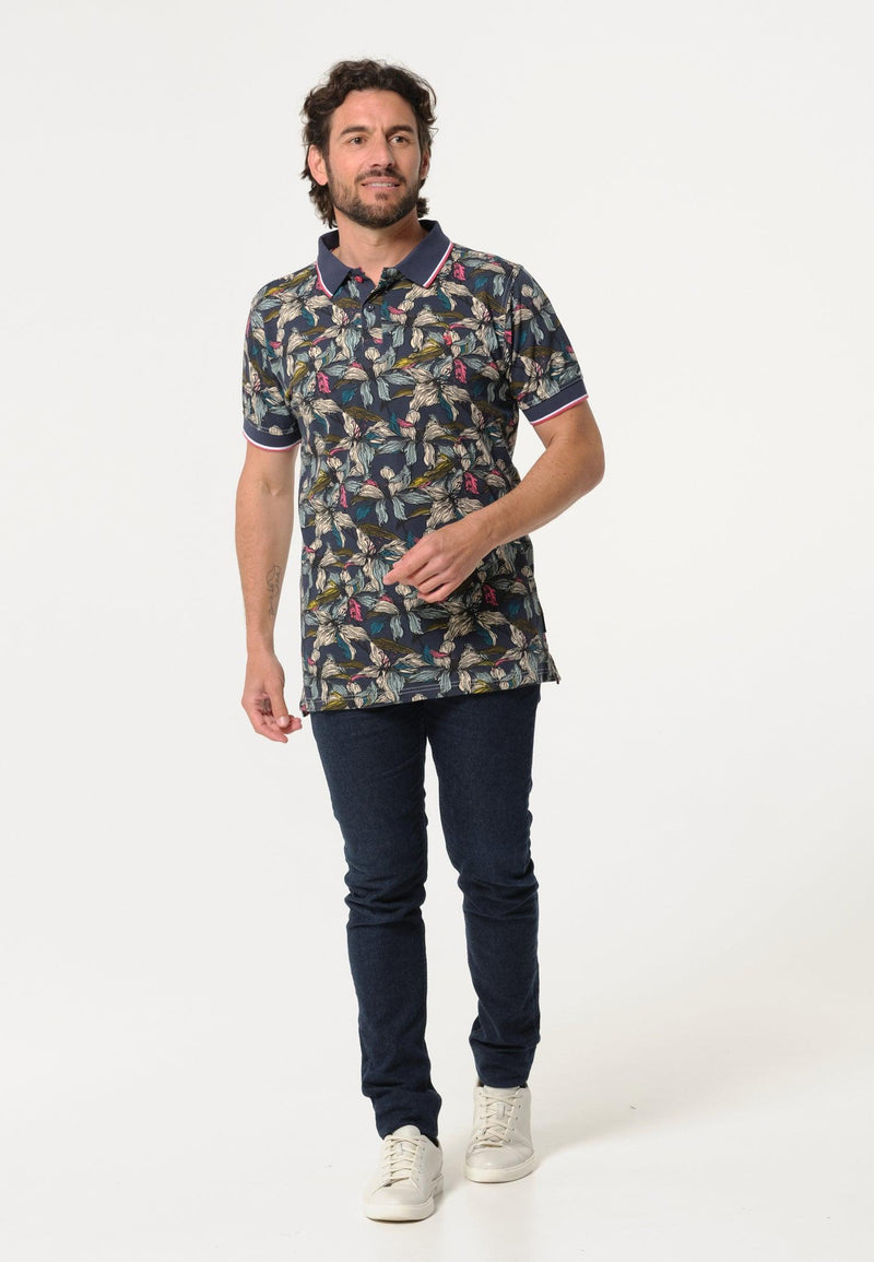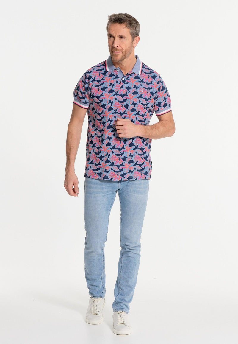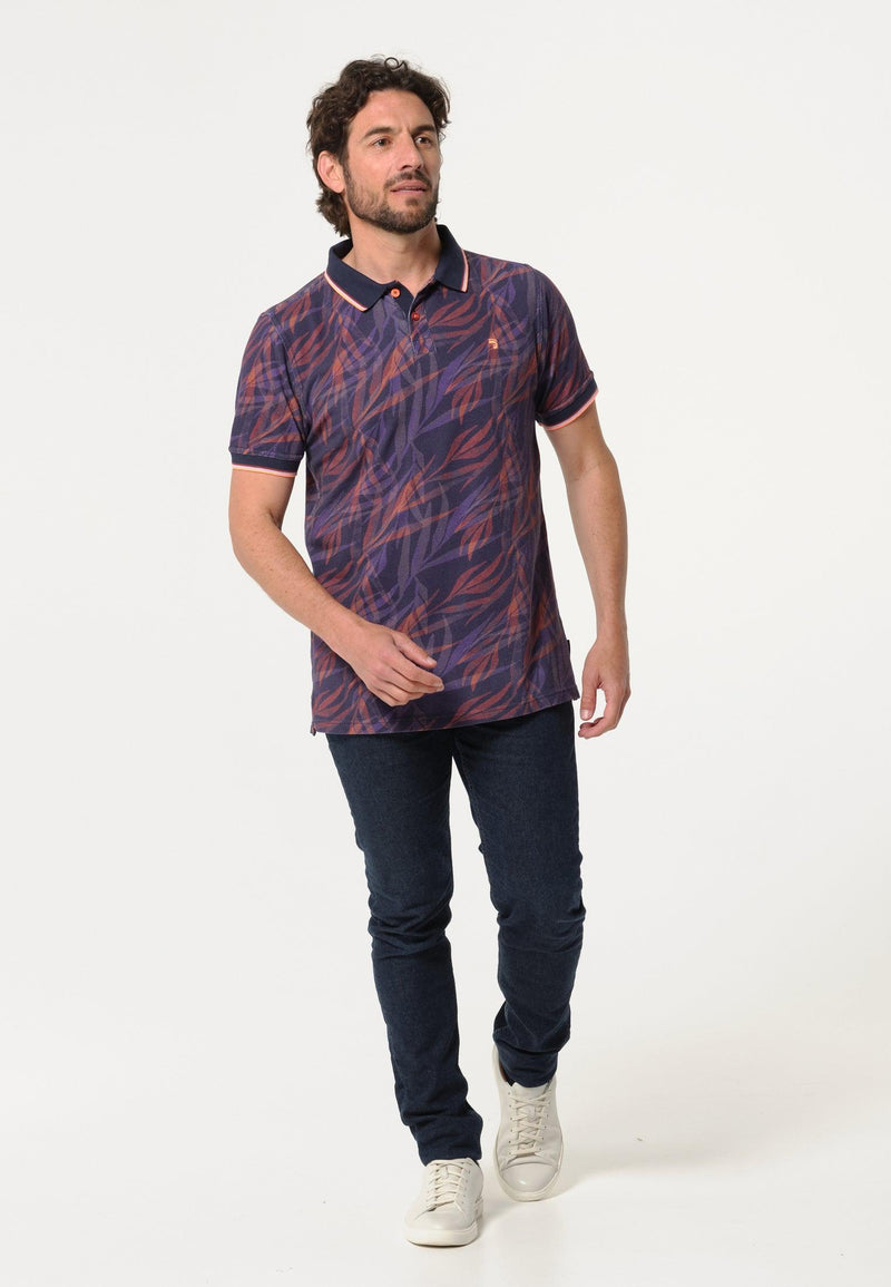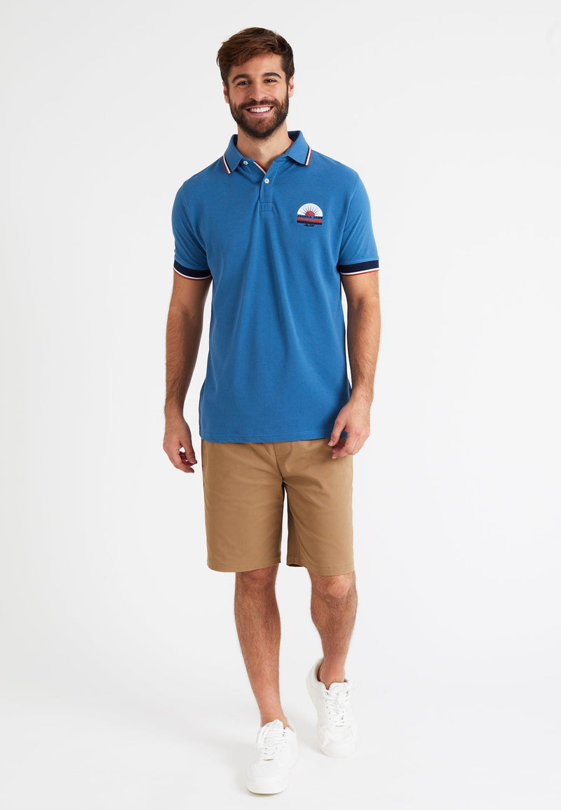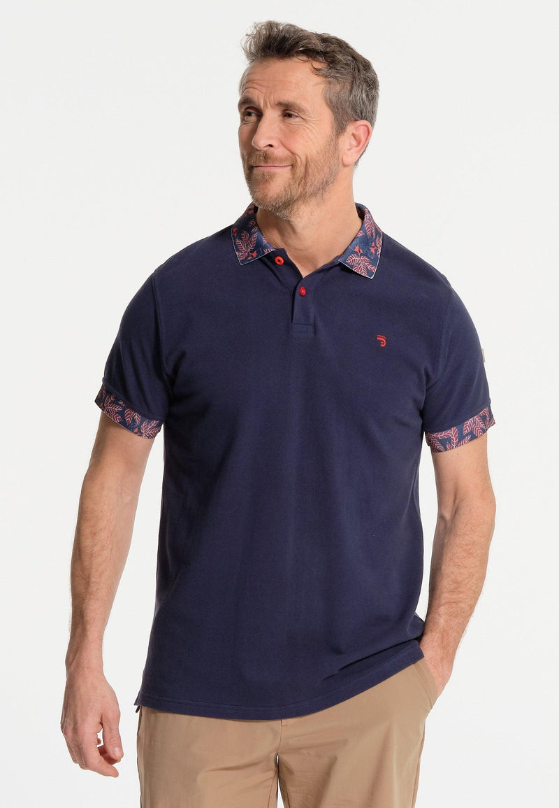 Polo homme bordeaux avec bandes contrastrées sur les manches
