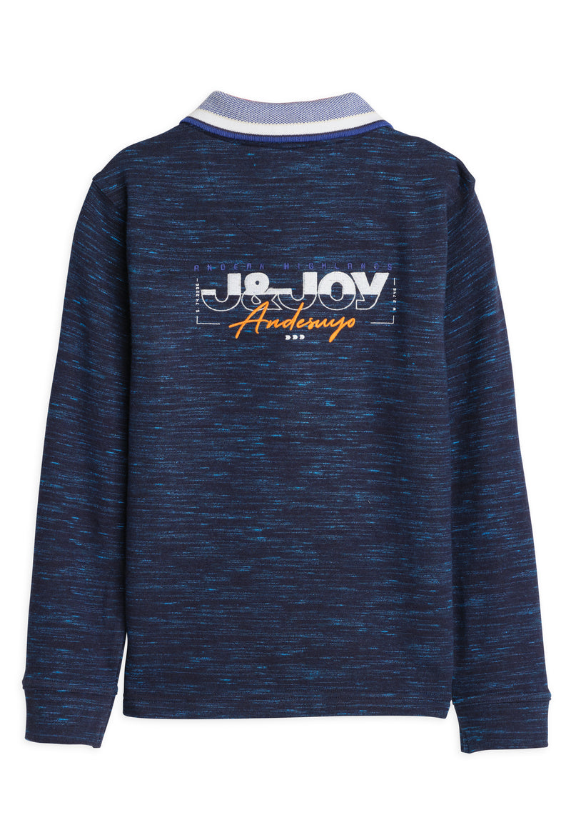 Polo garçon bleu foncé avec logo J&JOY dans le dos