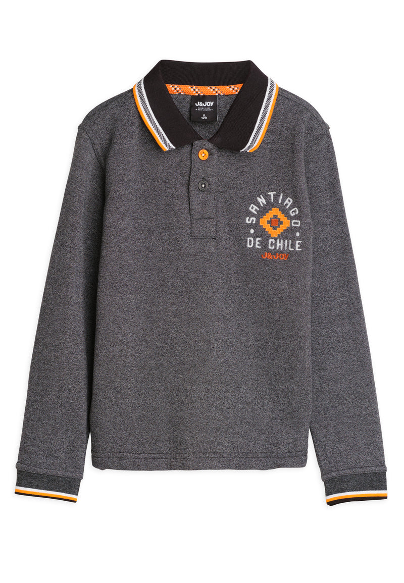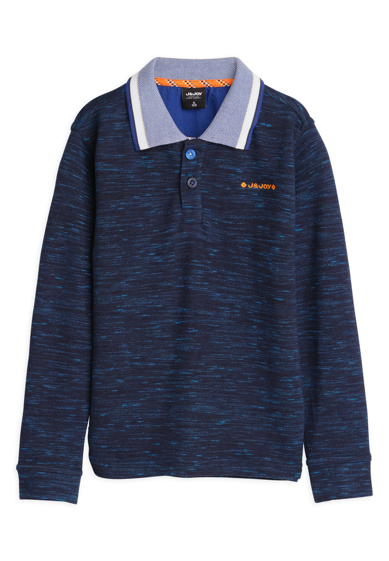 Polo garçon bleu marine avec logo J&JOY dans le dos
