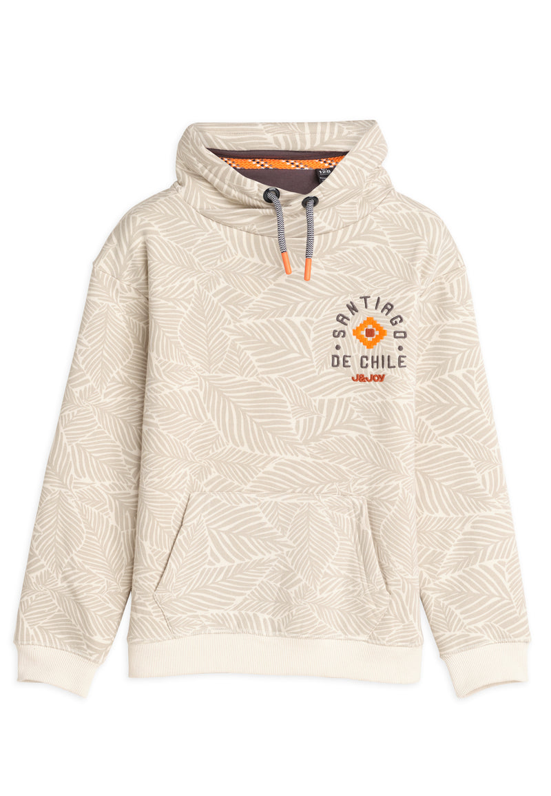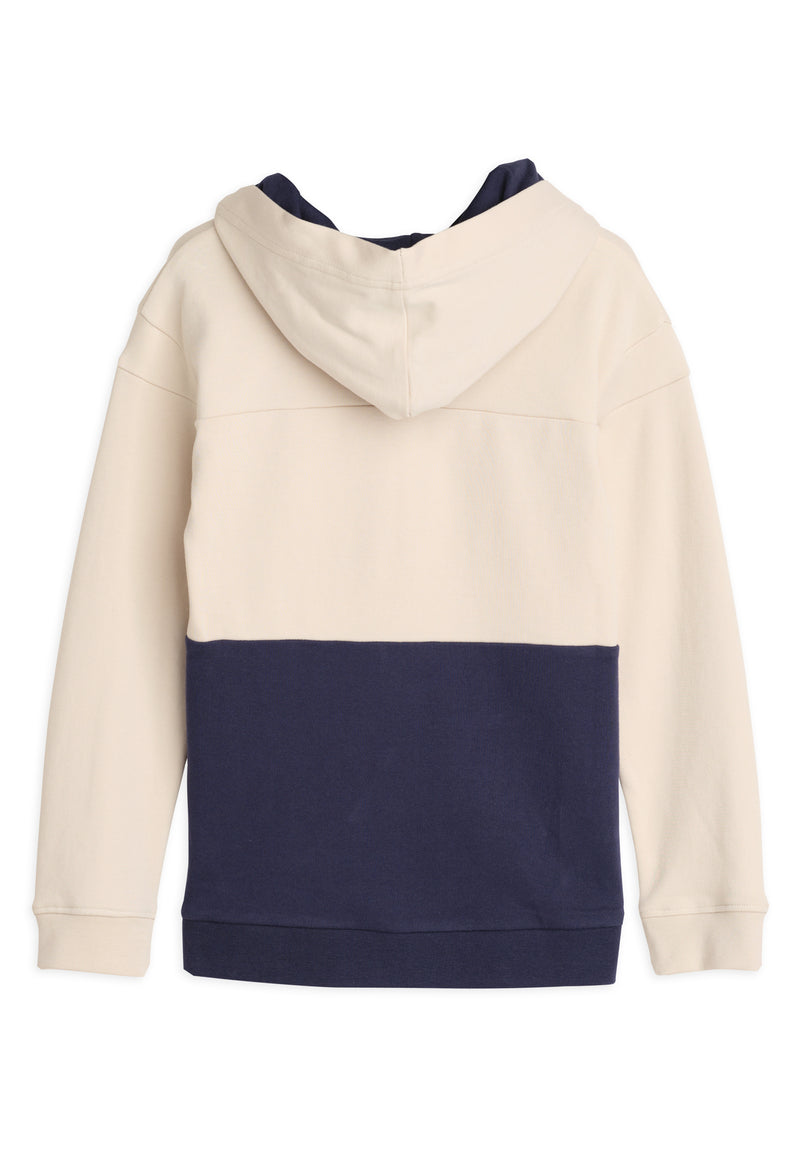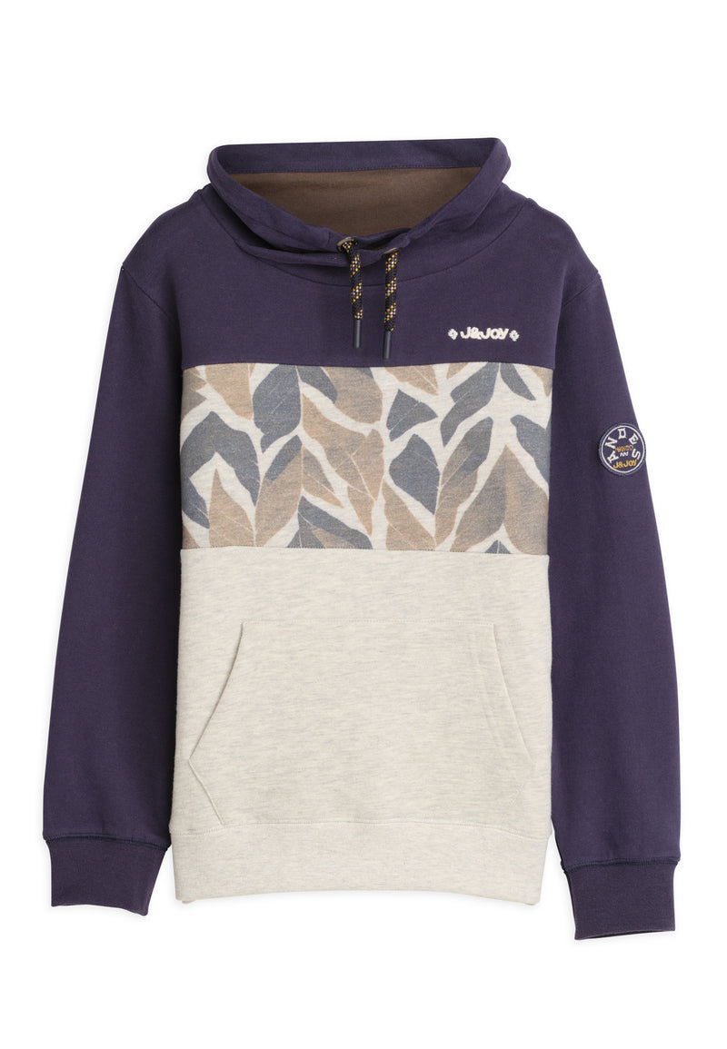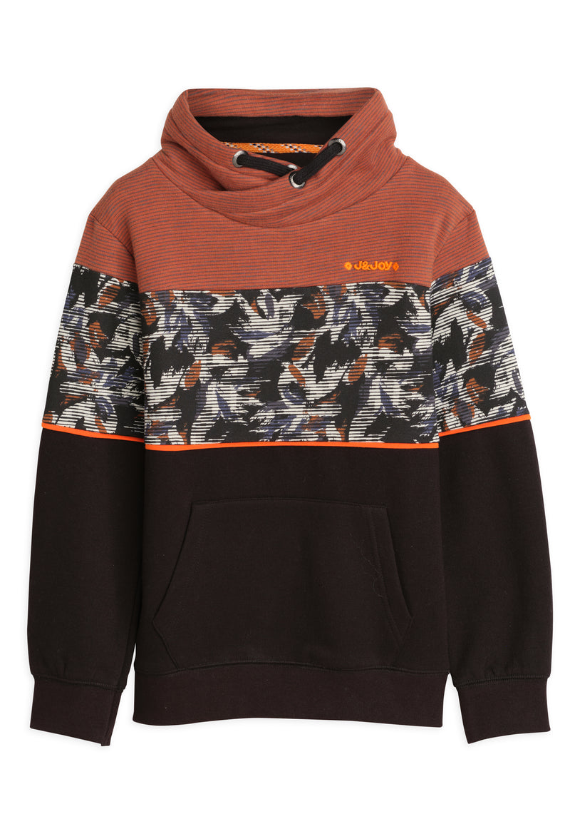 Sweatshirt garçon tricolore avec poche kangourou et motif végétal