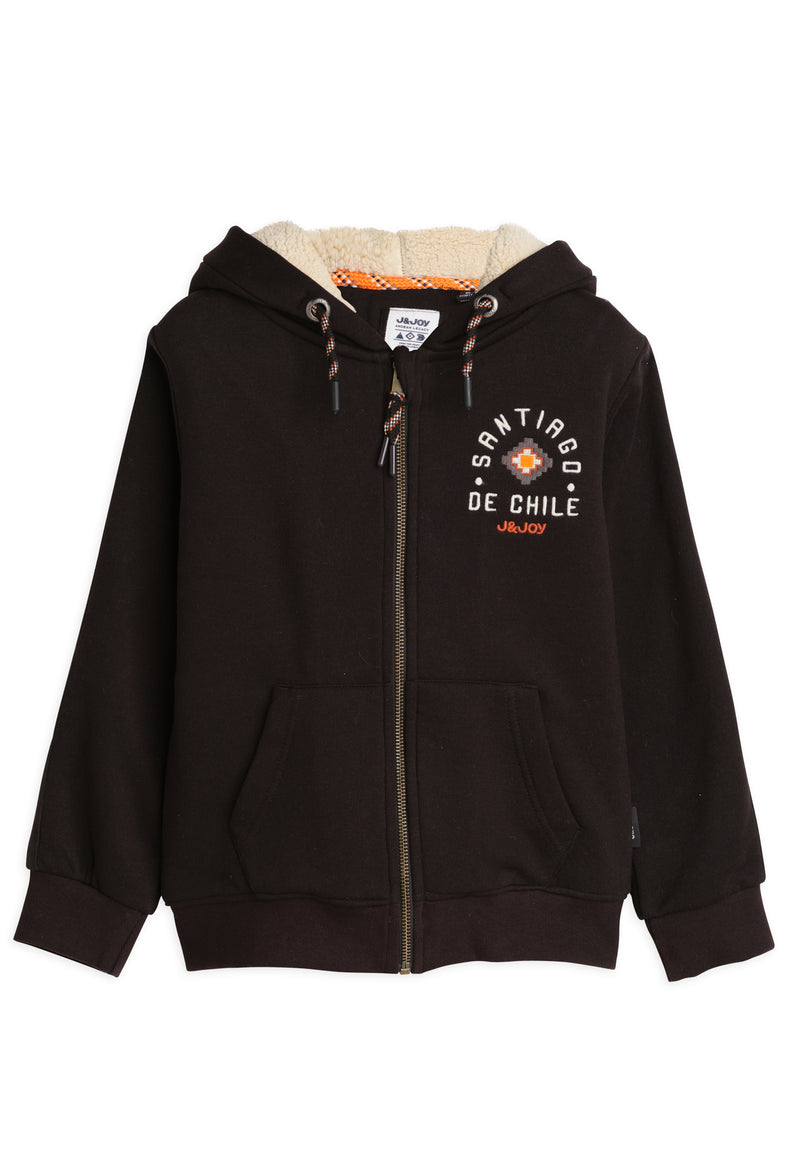 Sweatshirt garçon zippé avec capuche et logo Santiago sur le cœur