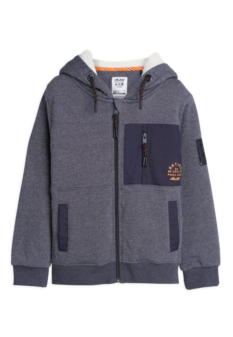 Sweatshirt garçon bleu marine avec tirette et capuche