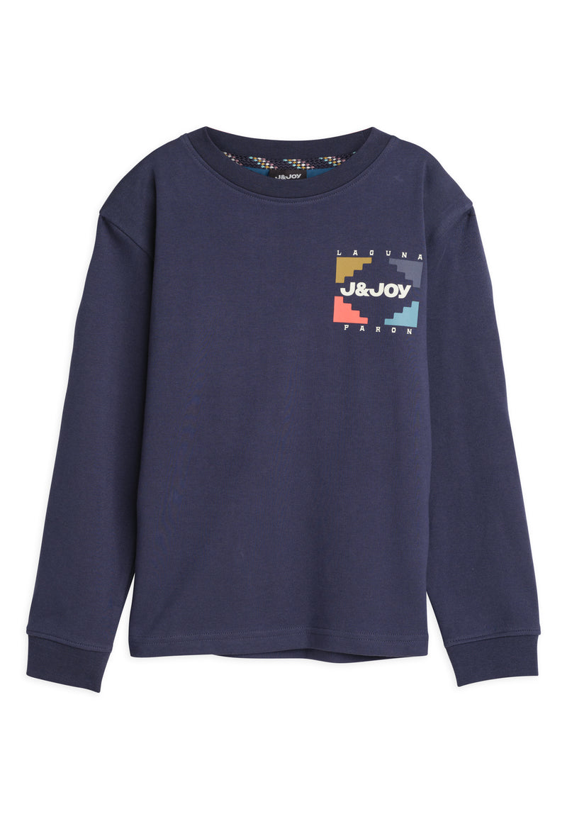 T-shirt garçon longues manches bleu avec imprimé dans le dos
