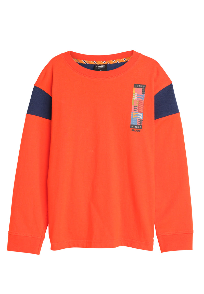 T-shirt garçon longues manches orange avec imprimé Andes dans le dos