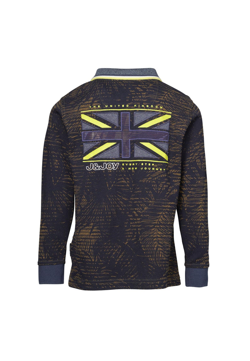 Polo garçon kaki avec feuilles et drapeau Grande-Bretagne