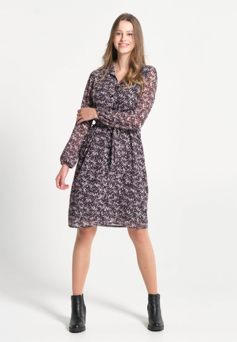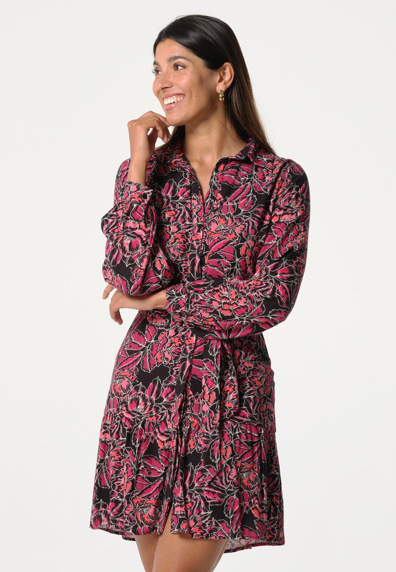 Robe femme boutonnée, courtes manches avec imprimé floral
