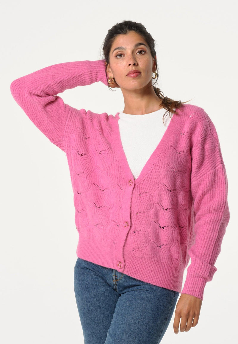Gilet femme rose avec texture et ouverture boutonnée