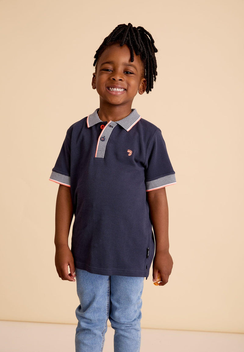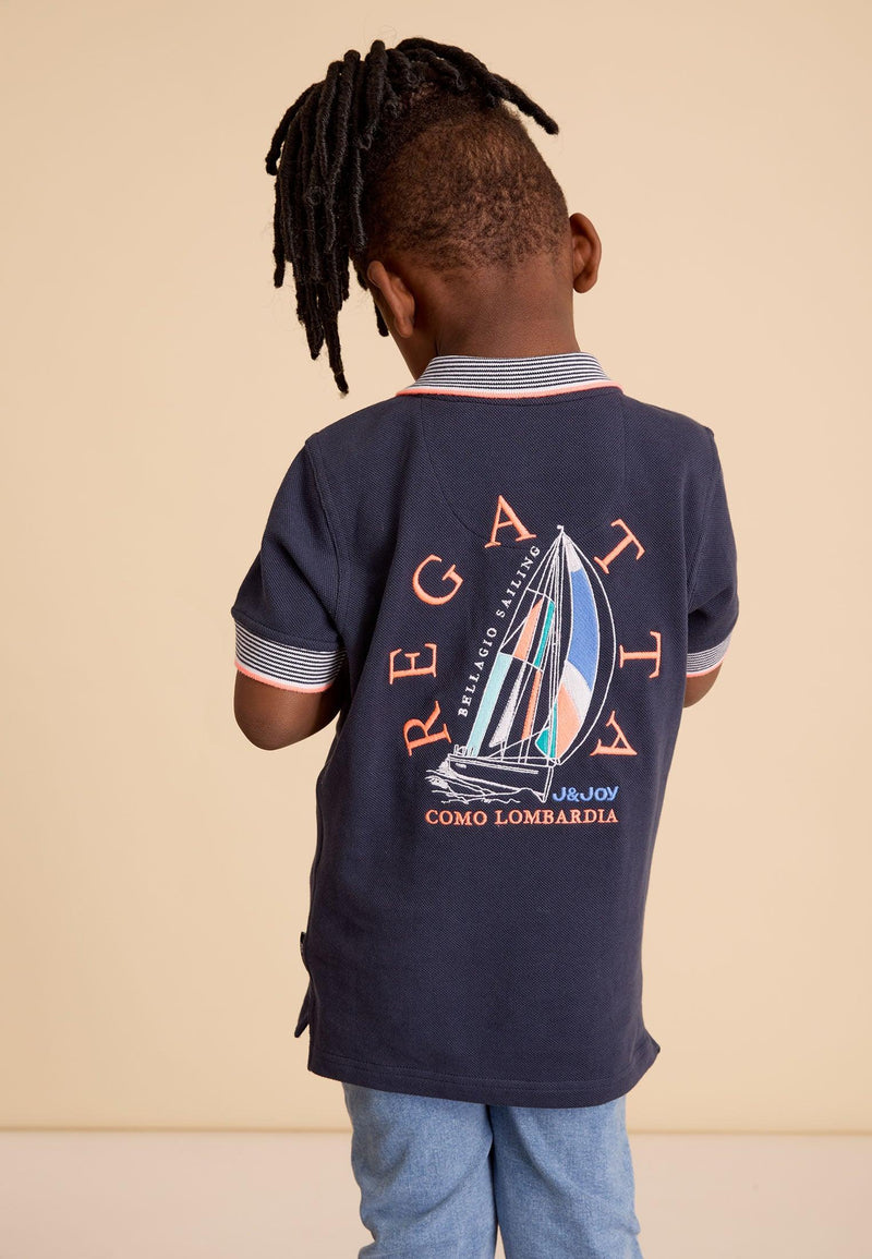 Polo garçon bleu avec logo bateau dans le dos