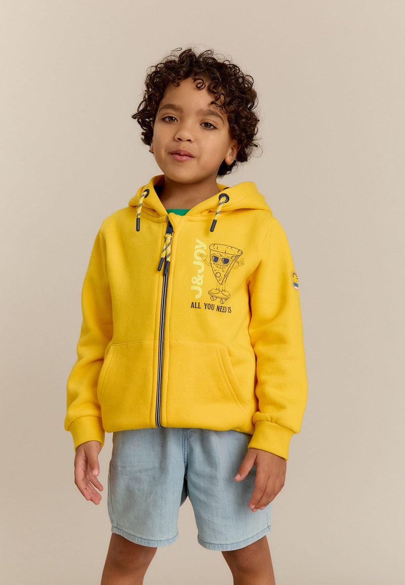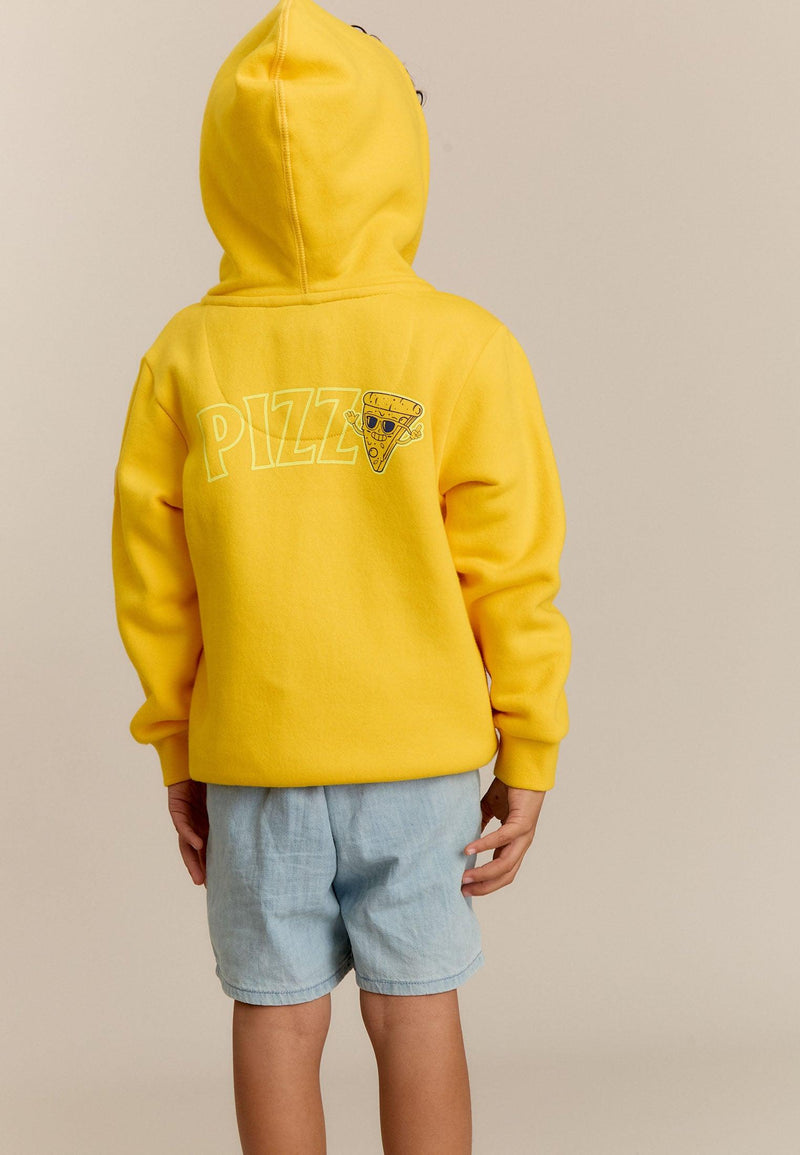 Sweatshirt garçon jaune logo pizza à capuche avec tirette