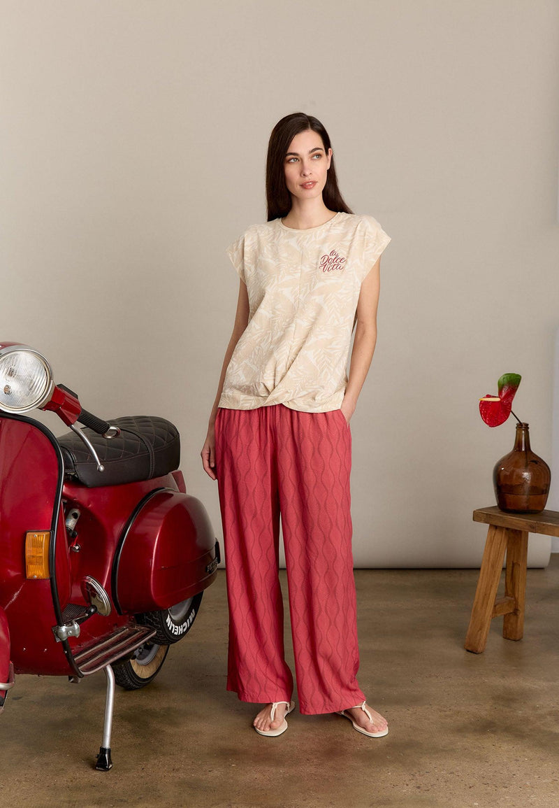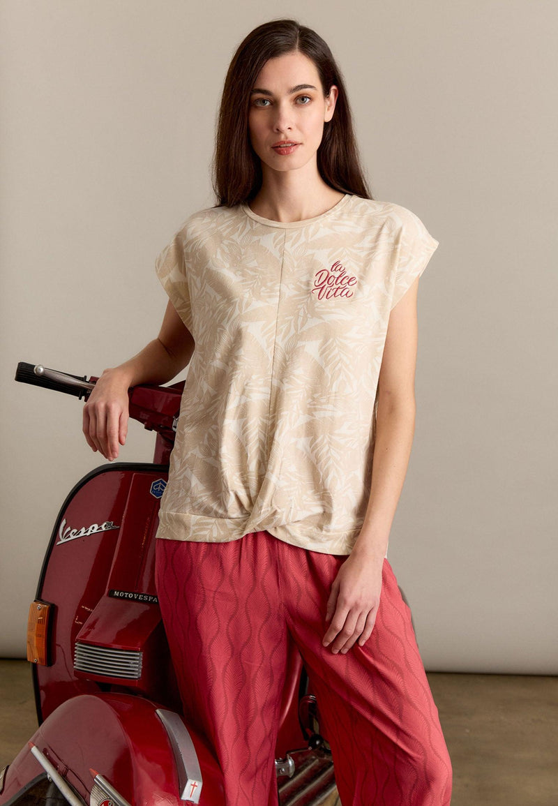T-shirt femme beige motif végétal LA DOLCE VITA sur le cœur