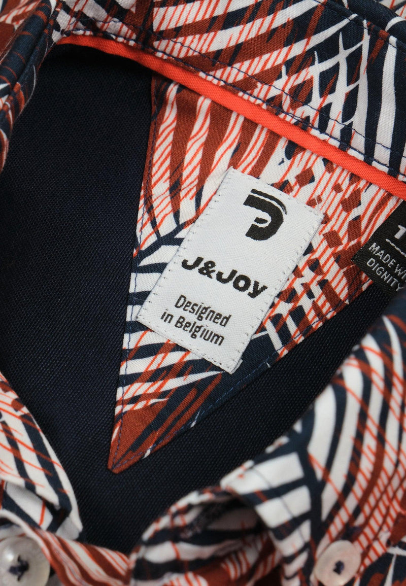 Polo homme brique, col bleue marine, imprimé floral
