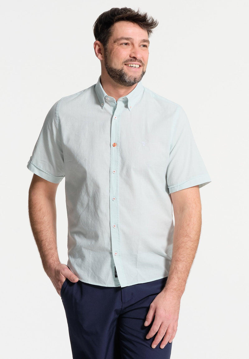 Chemise homme manches courtes turquoise - effet lin
