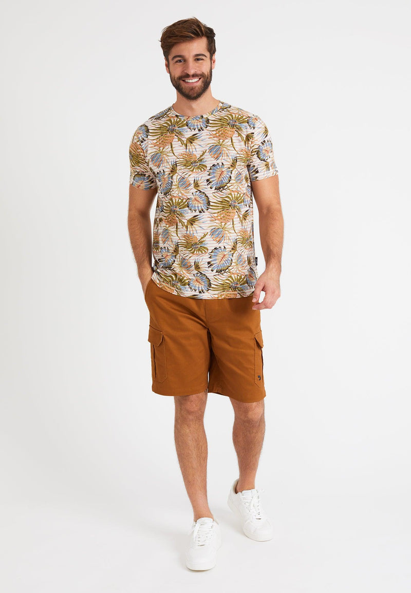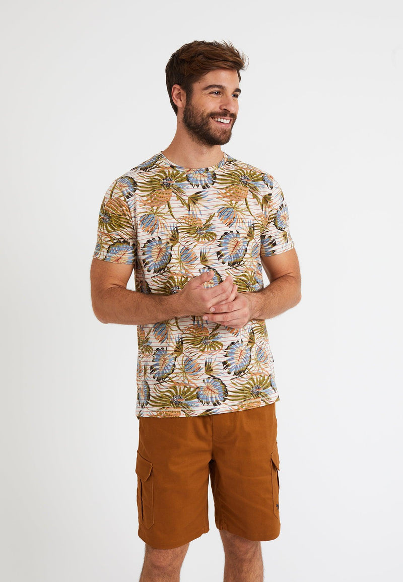 T-Shirt homme écru, imprimé feuilles