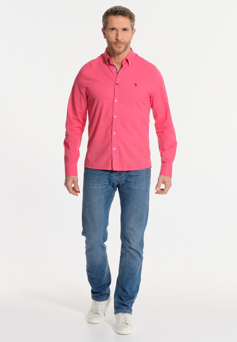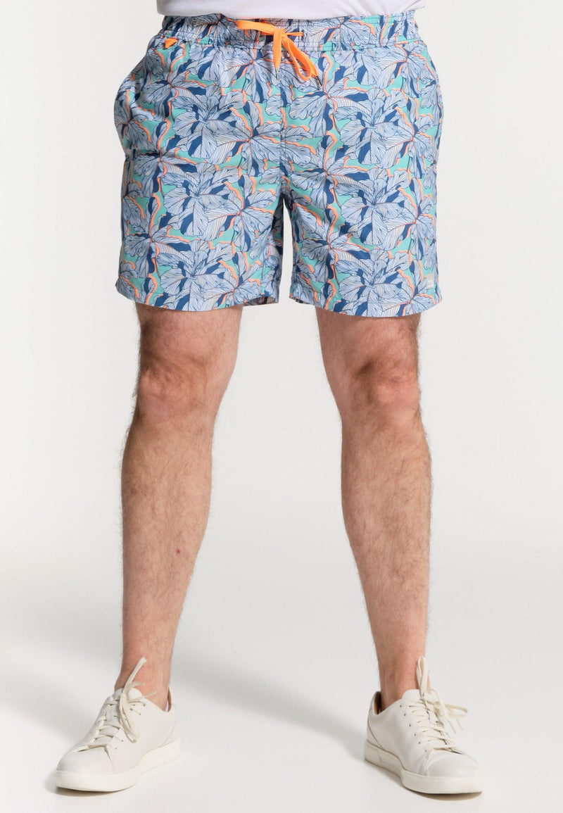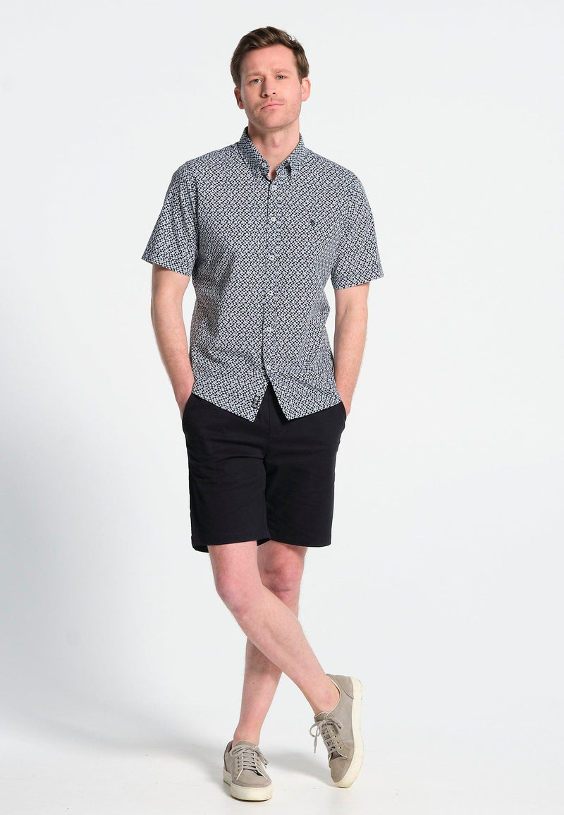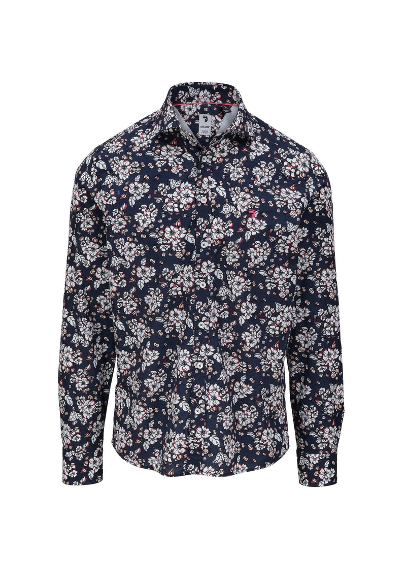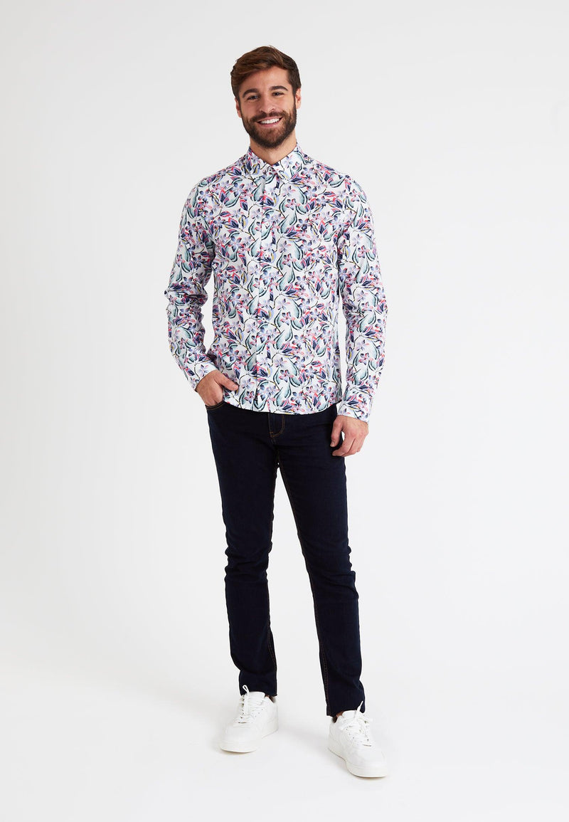 Chemise homme, imprimé feuilles bleues, col boutonné
