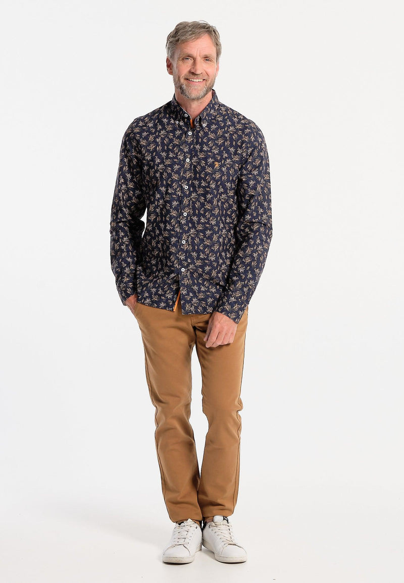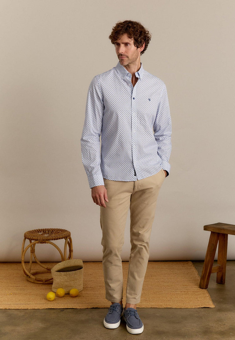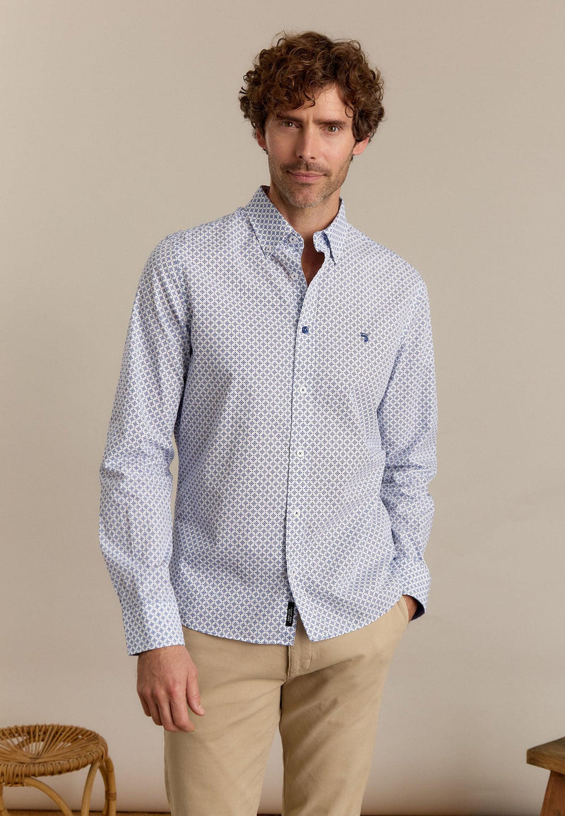 Chemise homme bleue longues manches motif imprimé