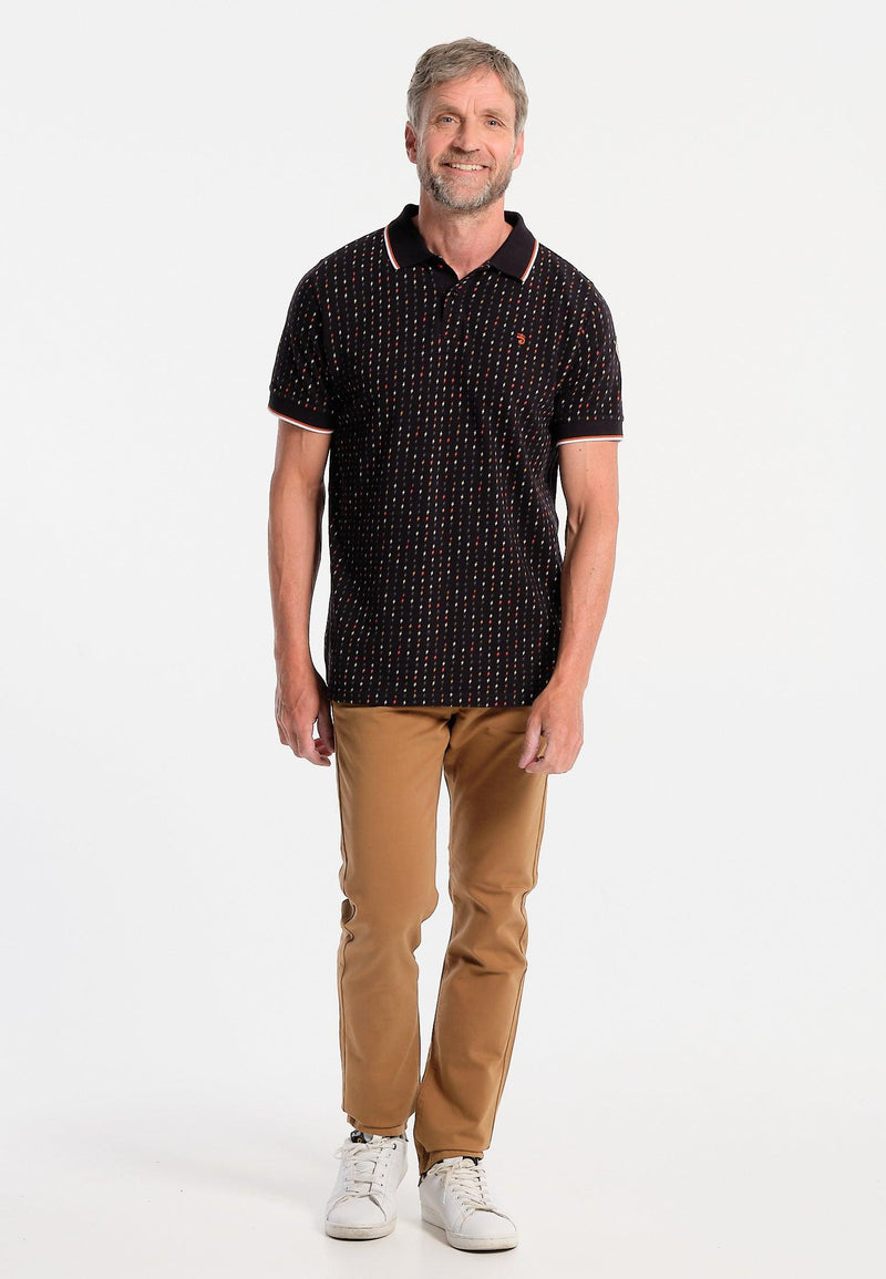 Polo homme noir, imprimé éclairs