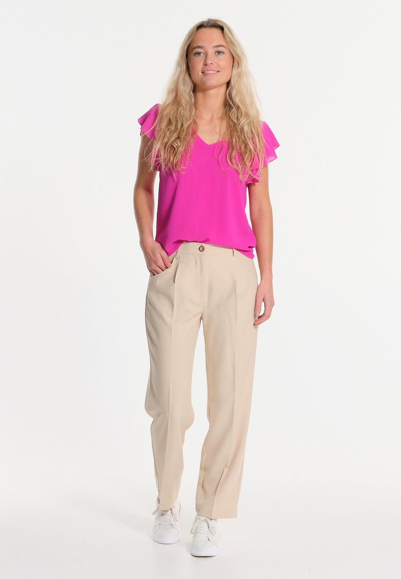 Top rose décoletté en V et manches légères