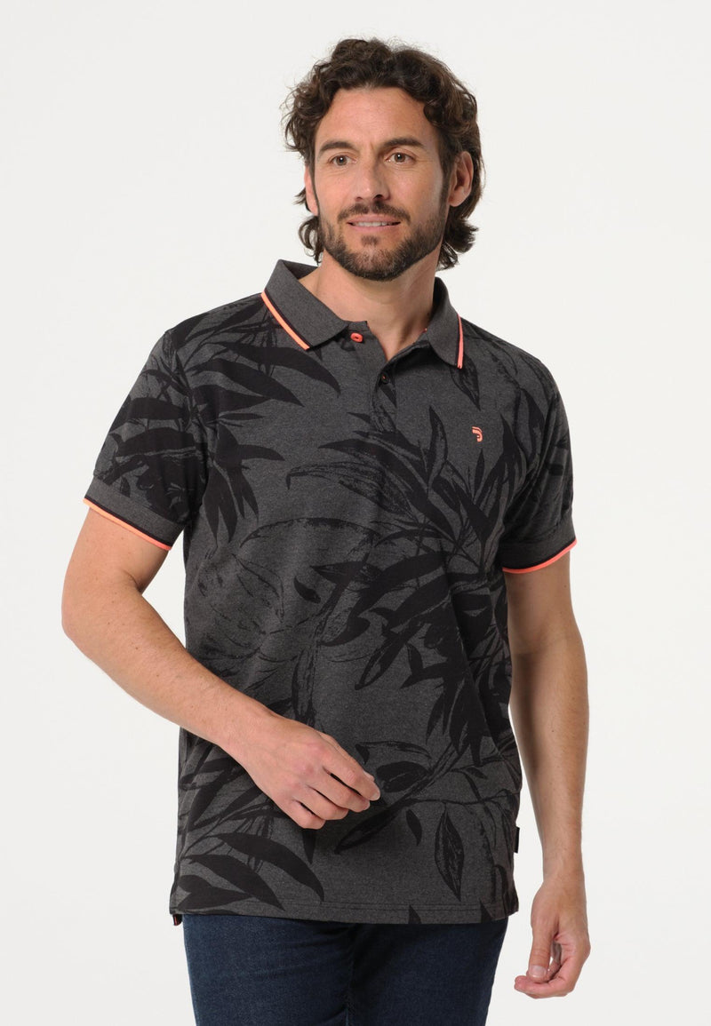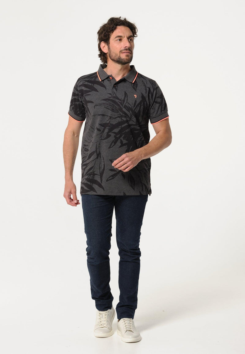 Polo homme bleu marine, imprimé feuilles