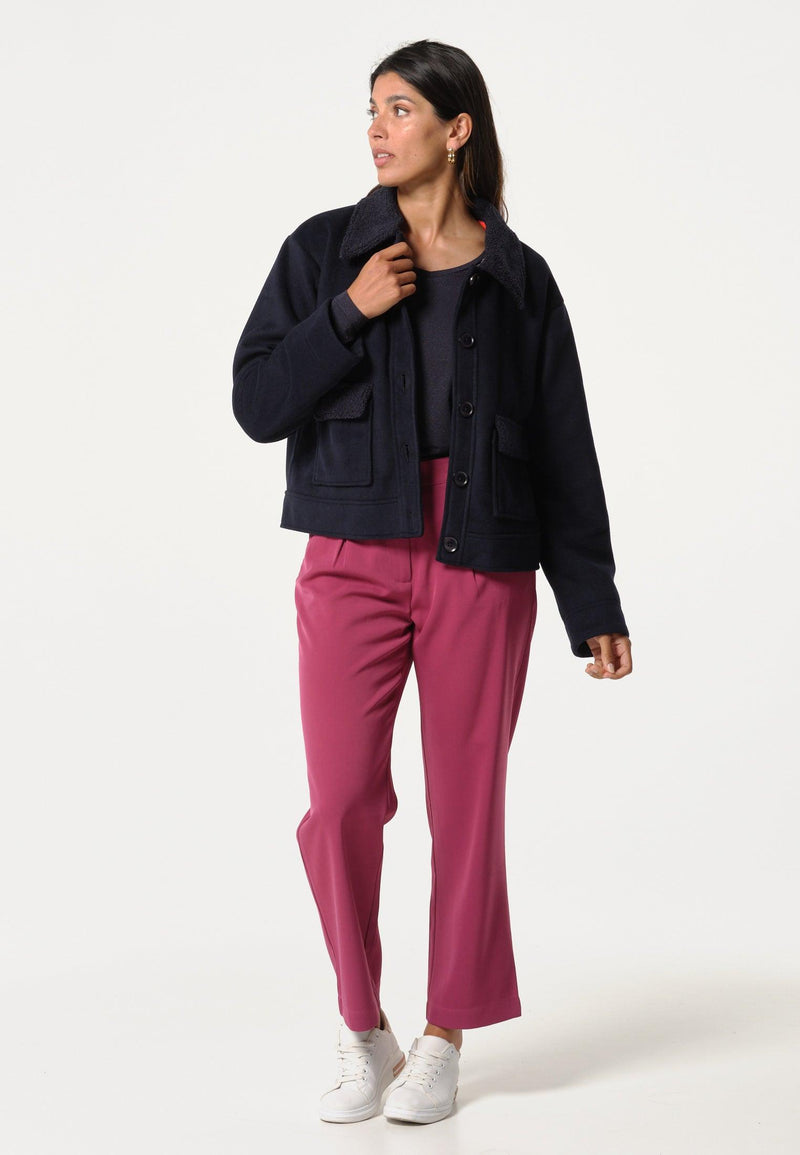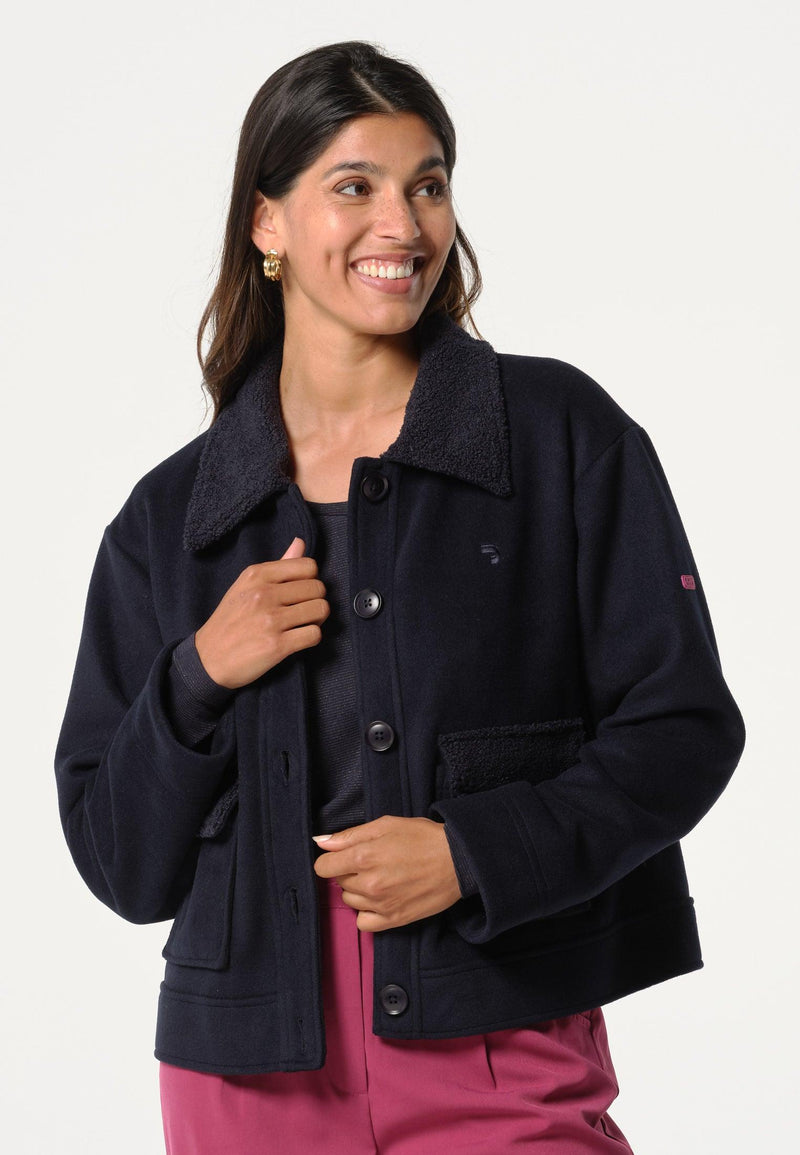 Cardigan femme bleu marine avec imprimé intérieur géométrique