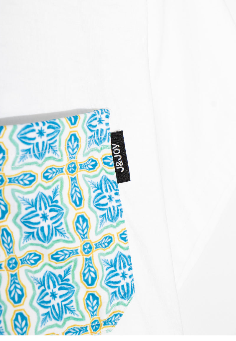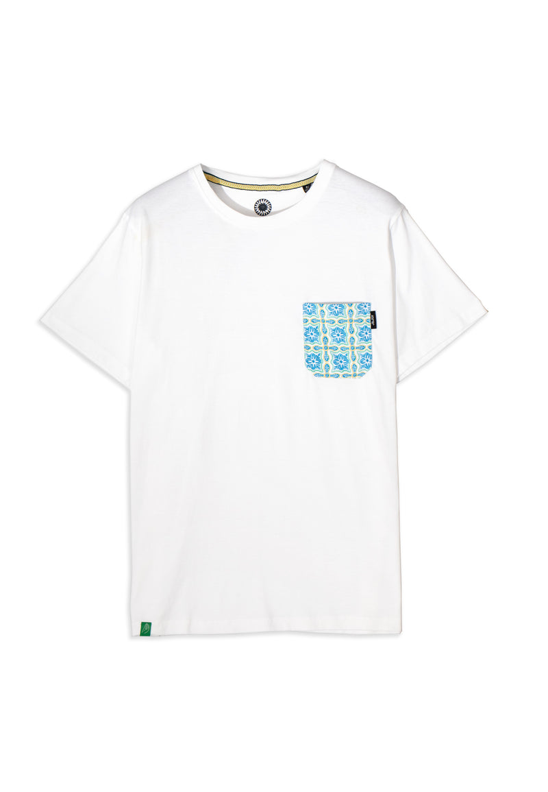 T-shirt homme blanc avec poche à motif géométrique