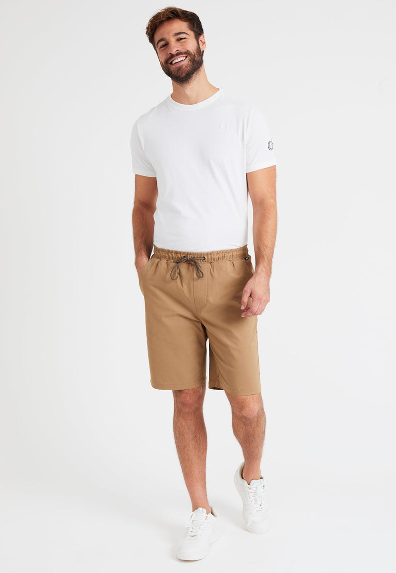 Short homme en coton piqué, taille elastiquée avec cordon de serrage