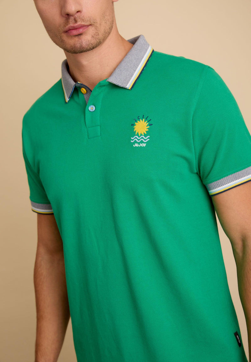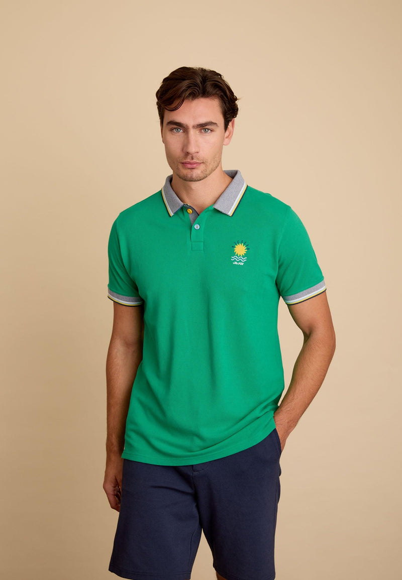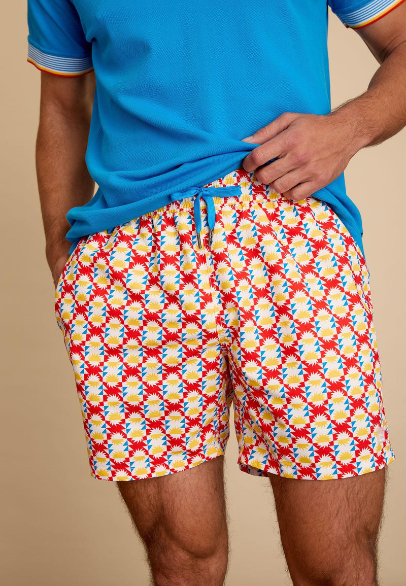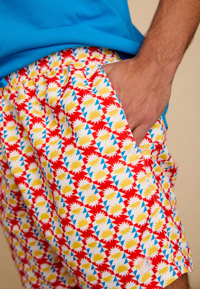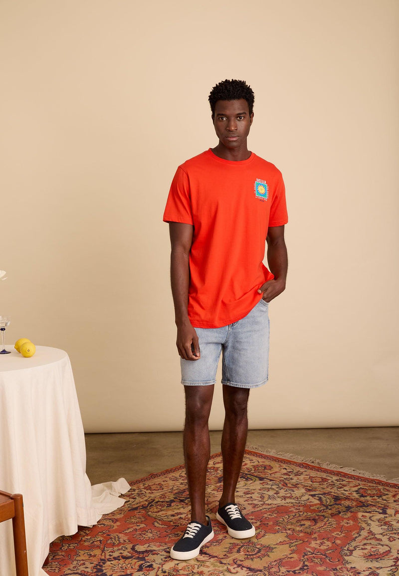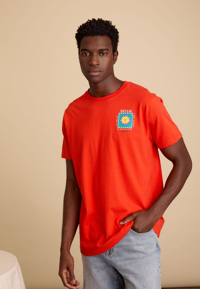 T-shirt homme rouge avec logo soleil sur la poitrine et dans le dos