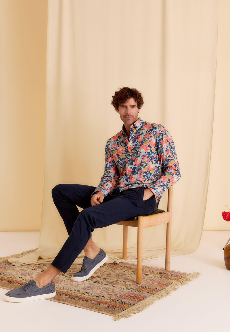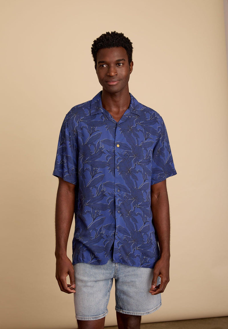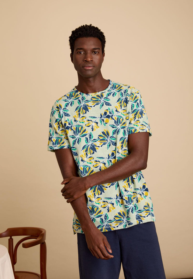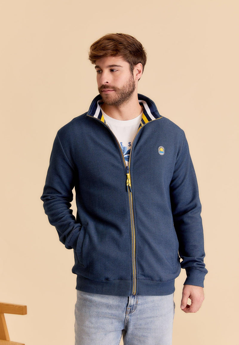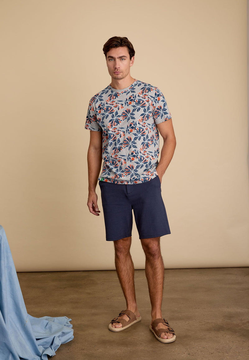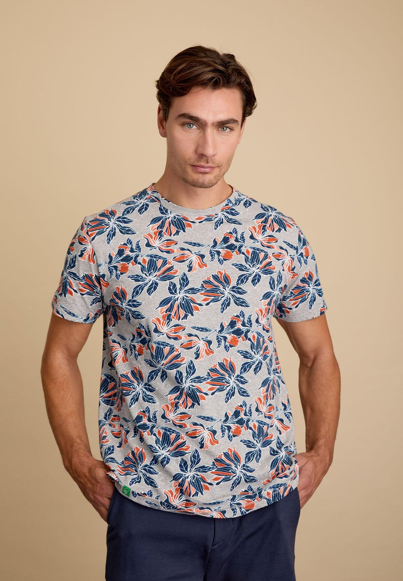T-shirt homme bleu avec logo soleil sur la poitrine et dans le dos
