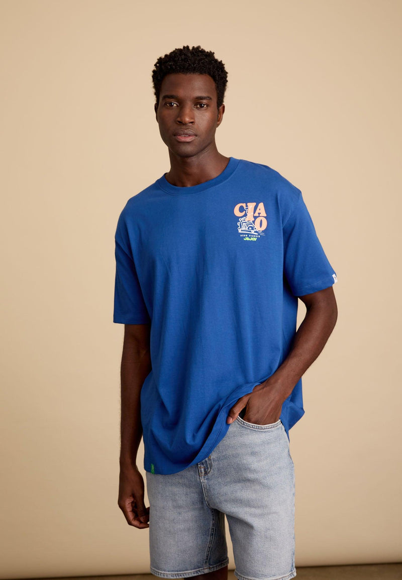 T-shirt homme bleu logo CIAO sur la poitrine et dans le dos