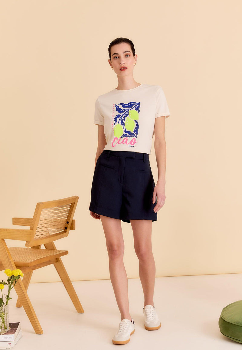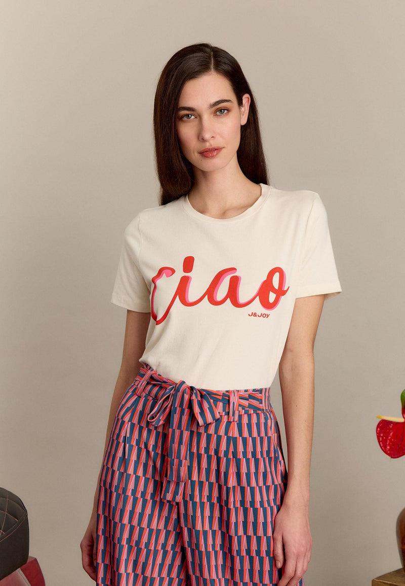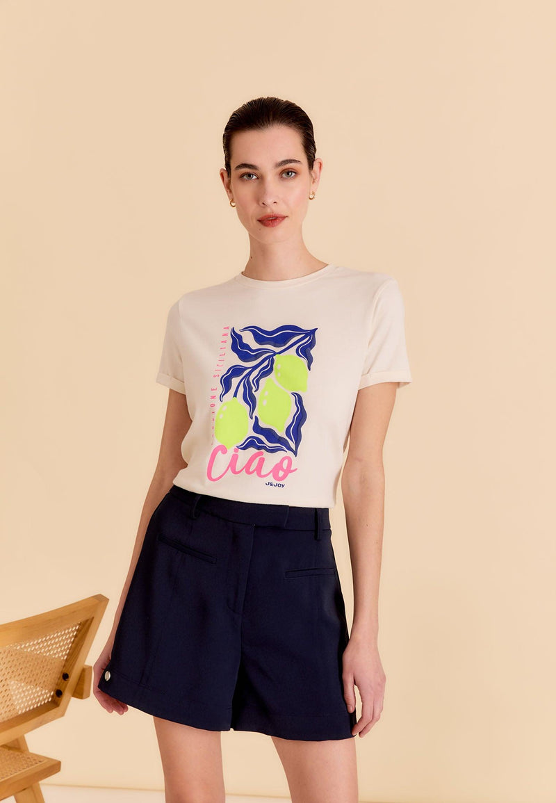 T-shirt femme beige motif végétal LA DOLCE VITA sur le cœur