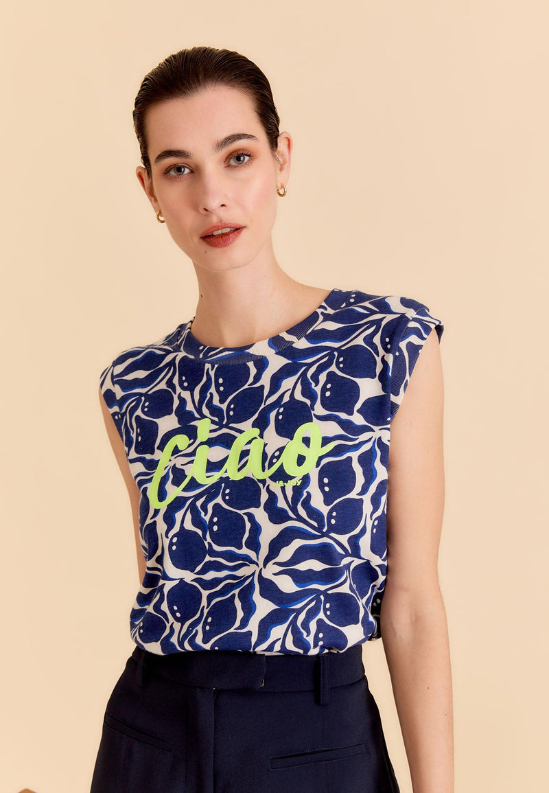 Top femme bleu à lignes blanches LA DOLCE VITA sur le cœur