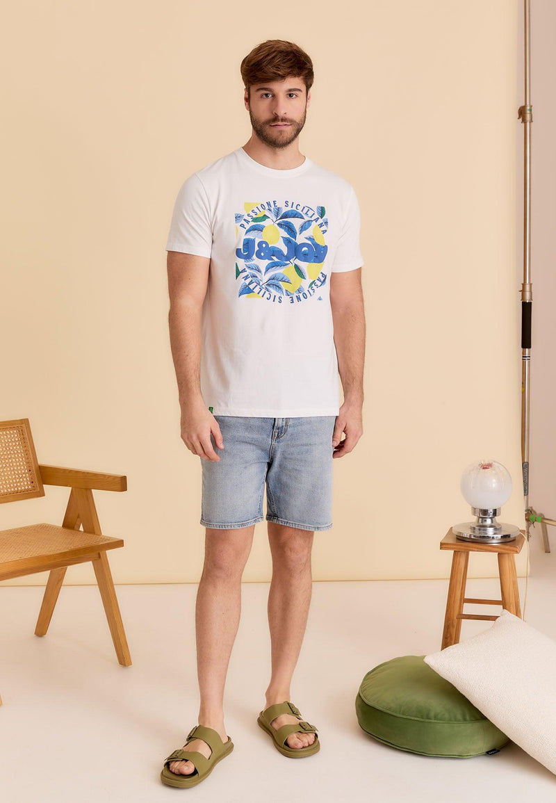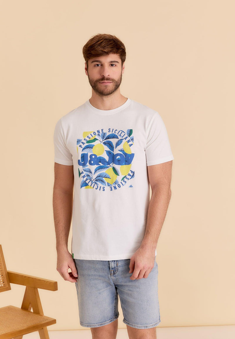 T-shirt homme blanc J&JOY et citrons jaunes devant
