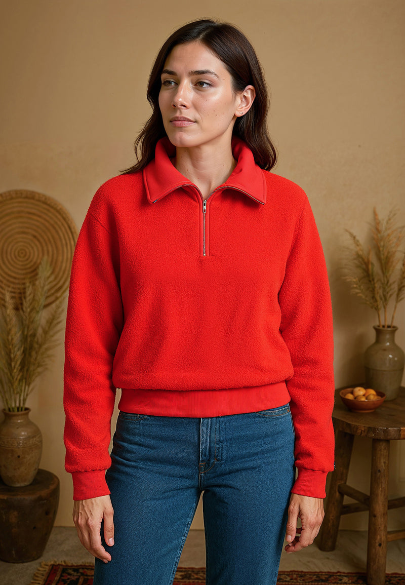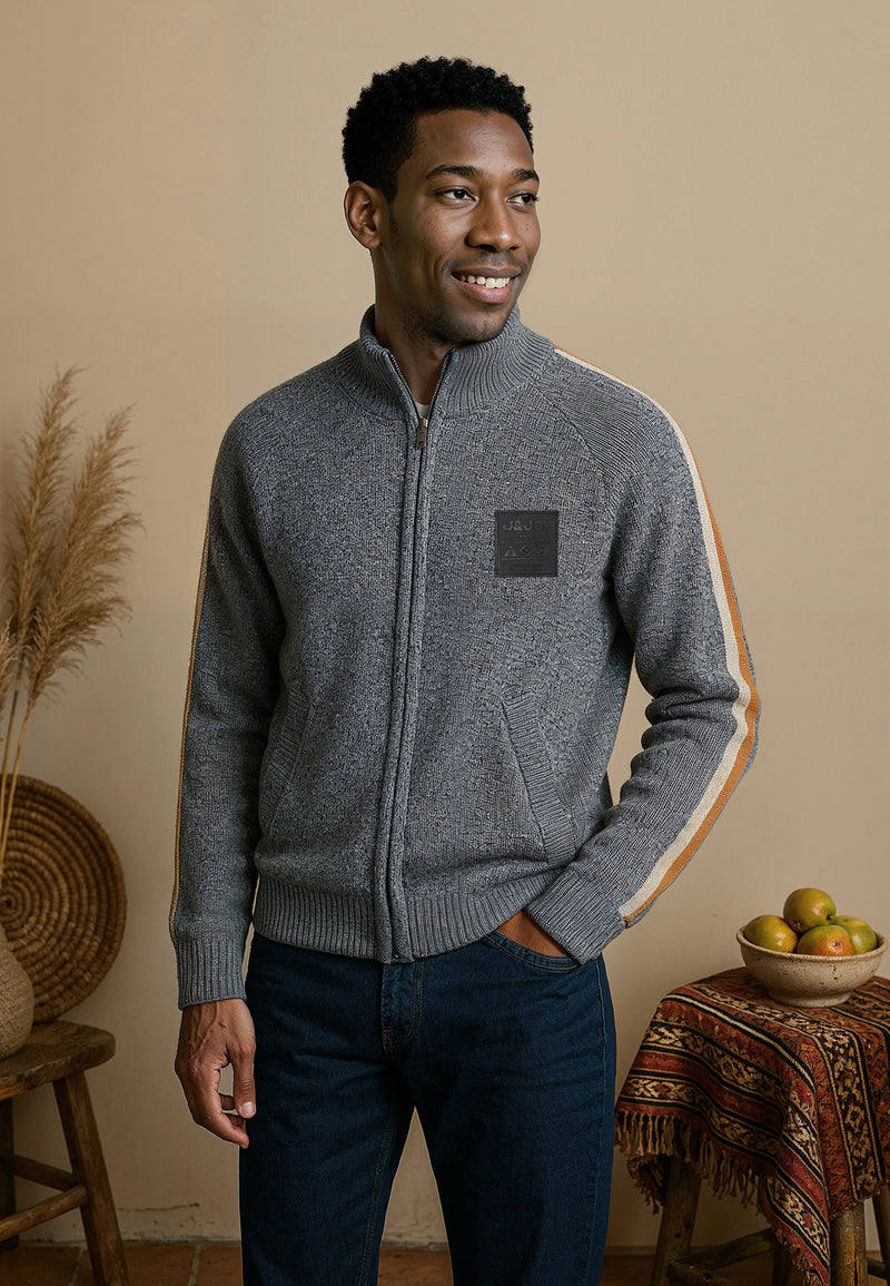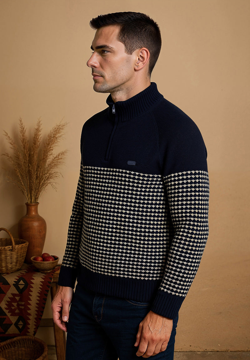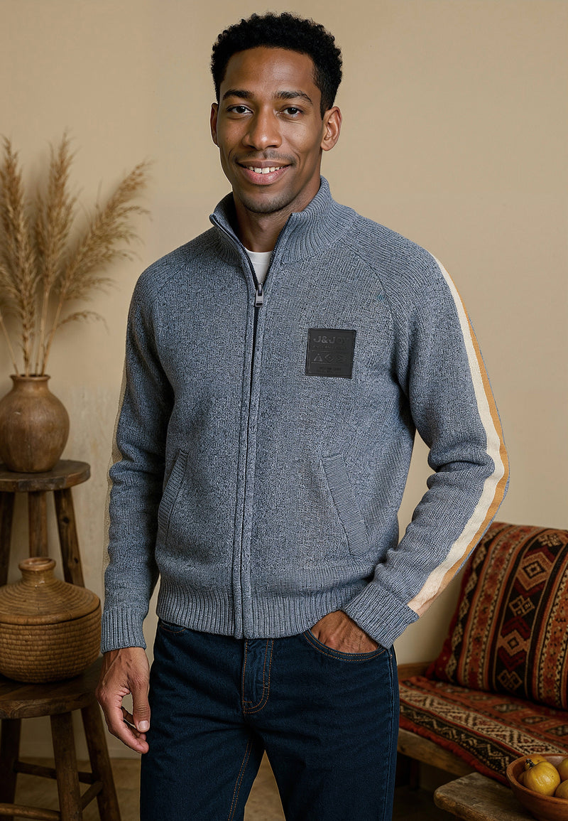 T-shirt homme manches longues tricolore avec col montant et poche kangourou