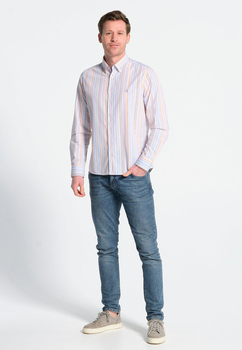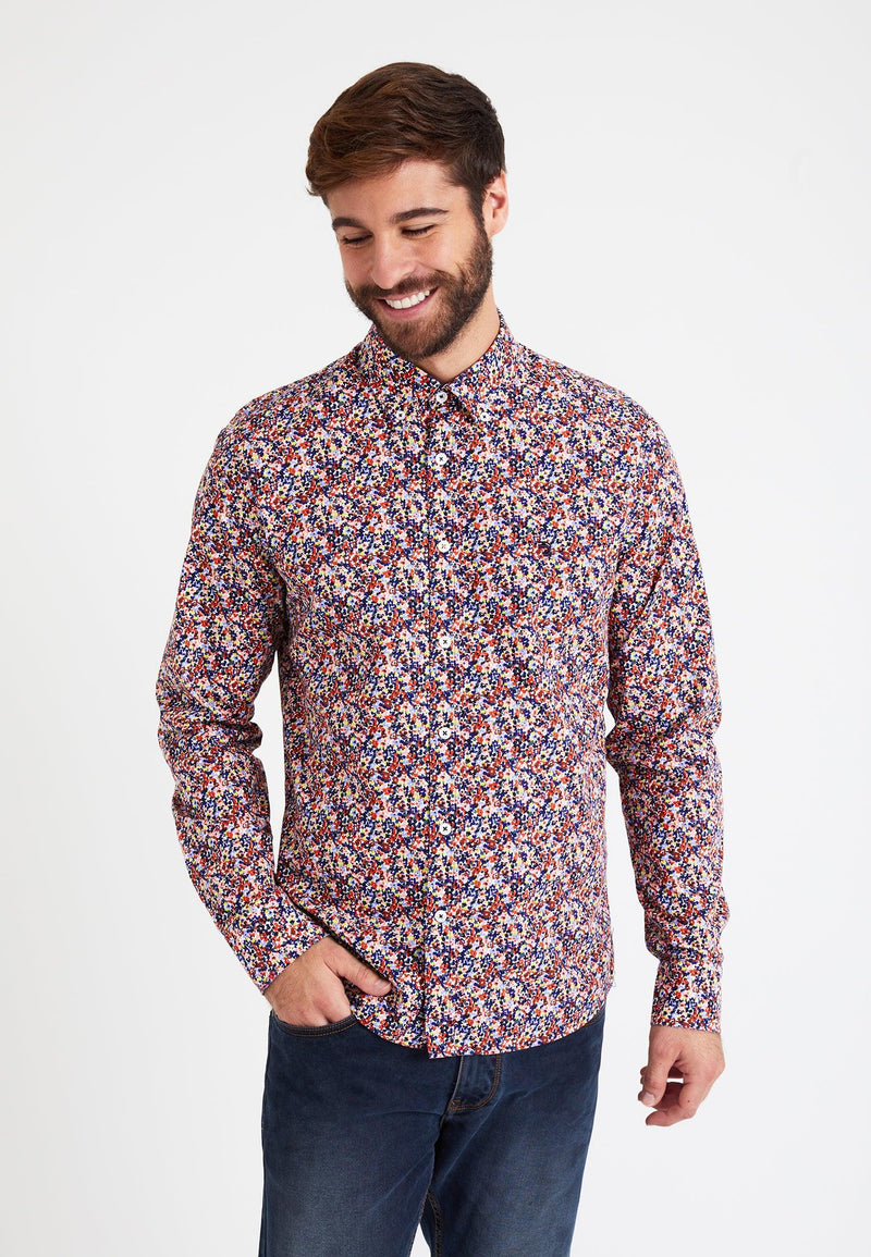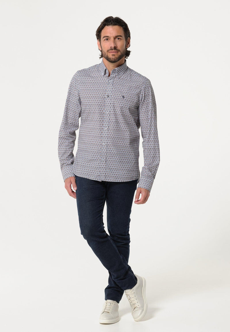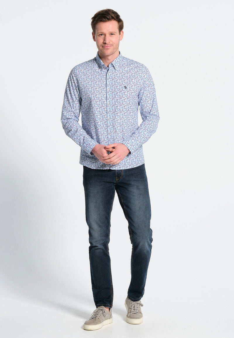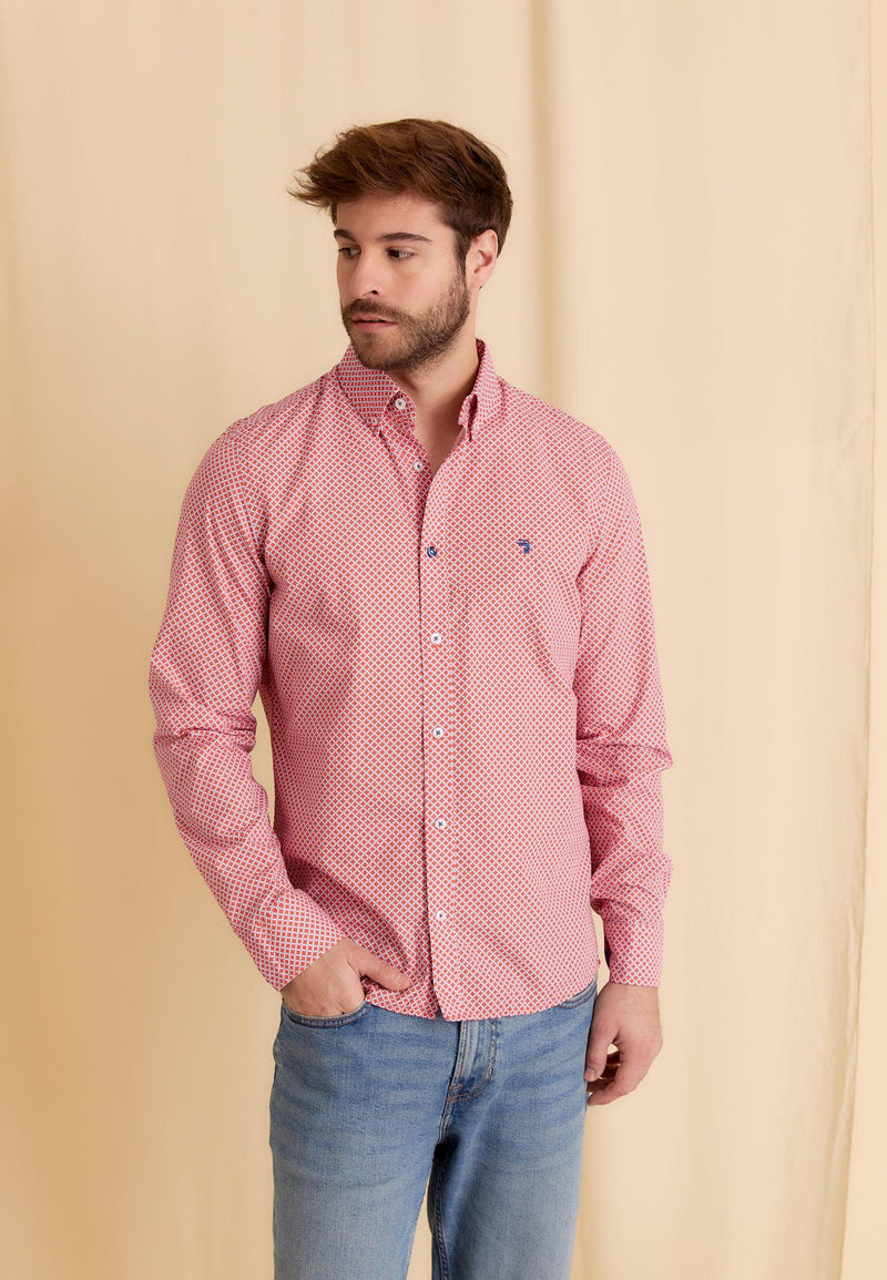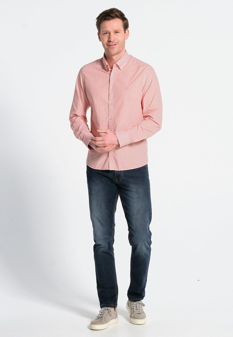 Green long-sleeved shirt for men with roll-up sleeves and Mao collar