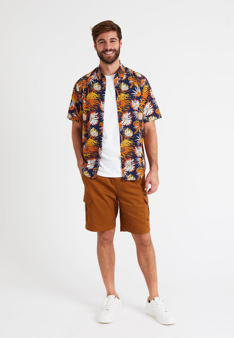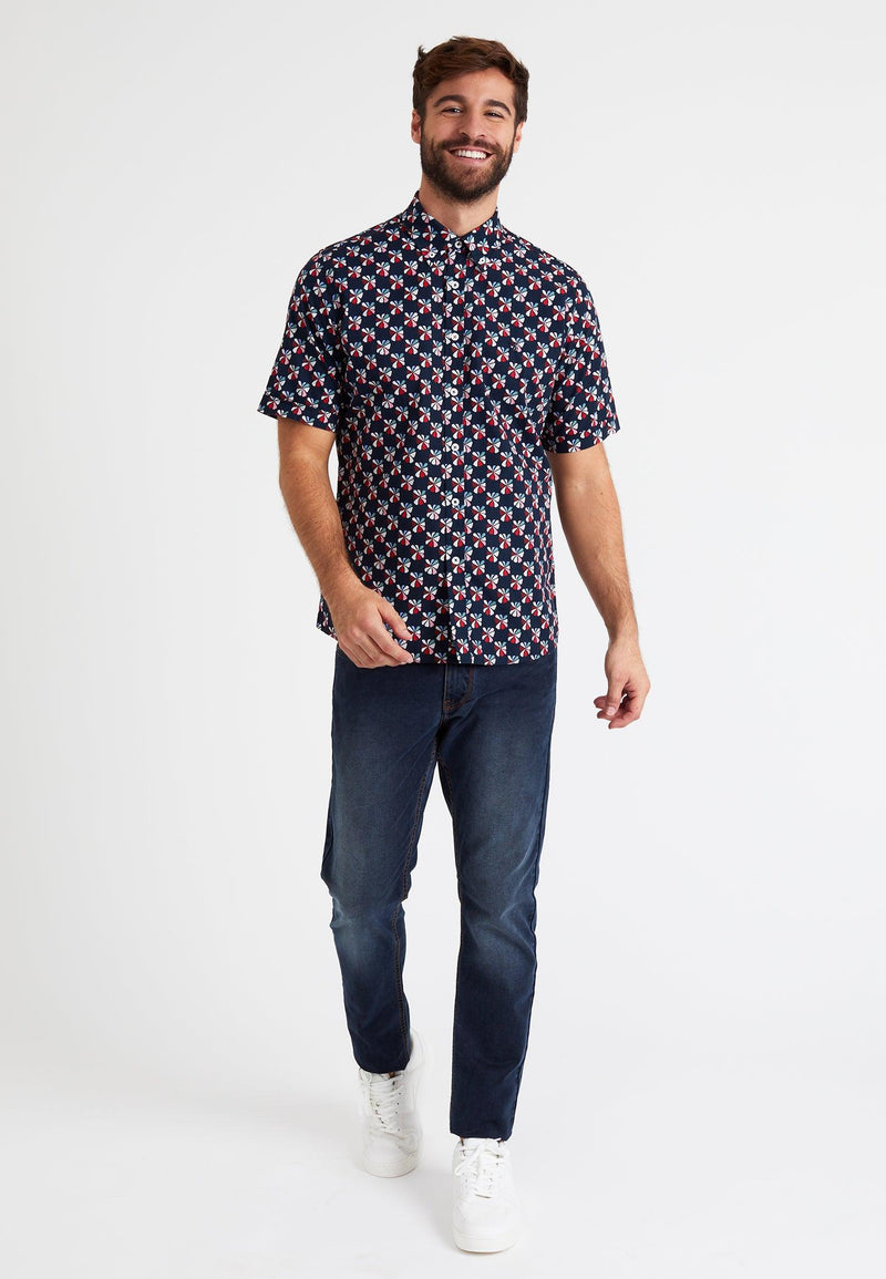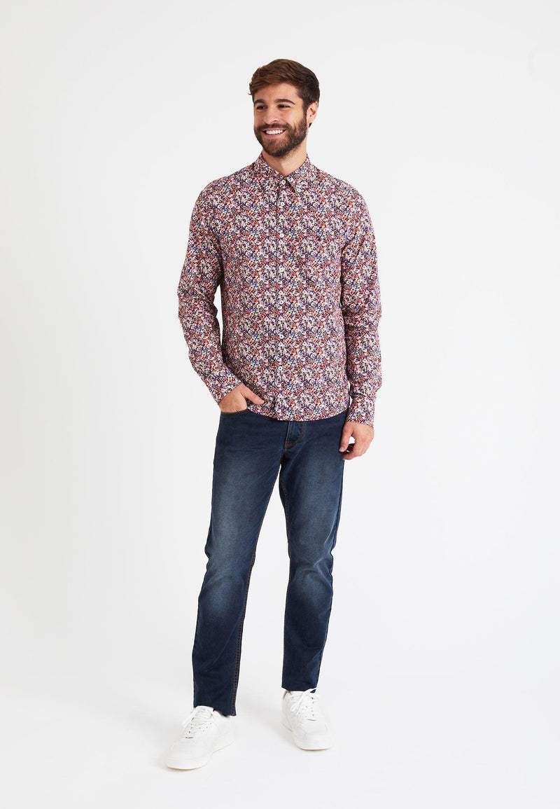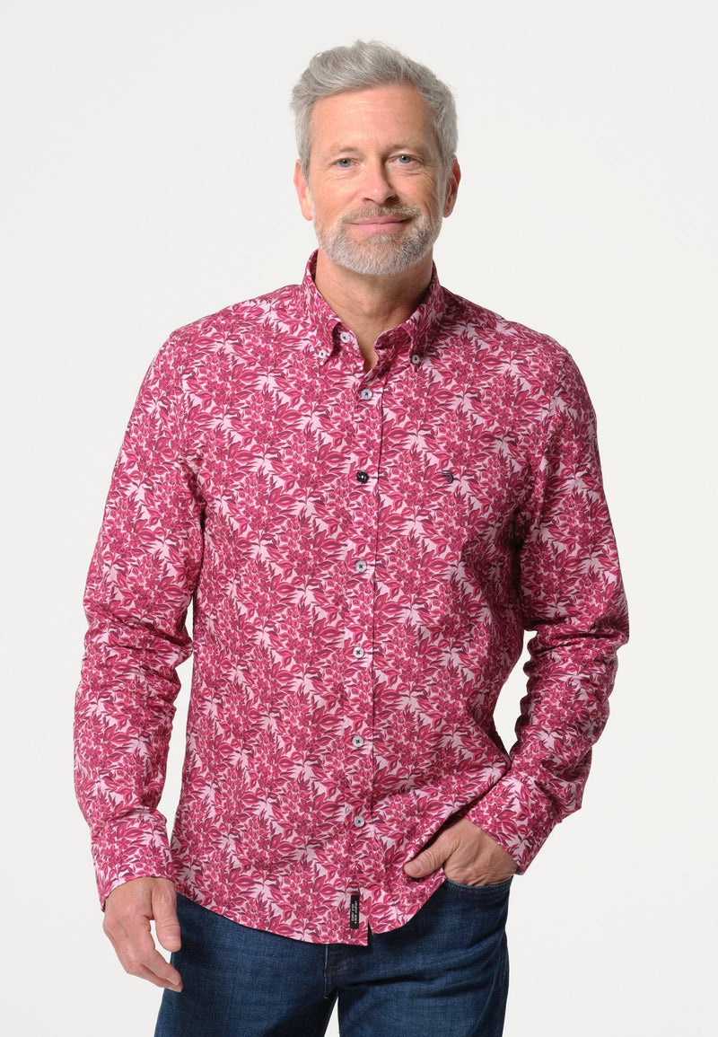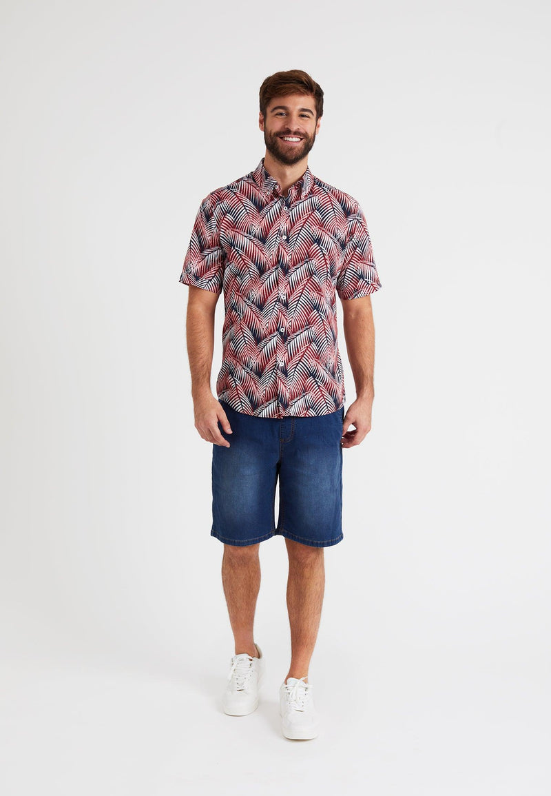 Green long-sleeved shirt for men with roll-up sleeves and Mao collar