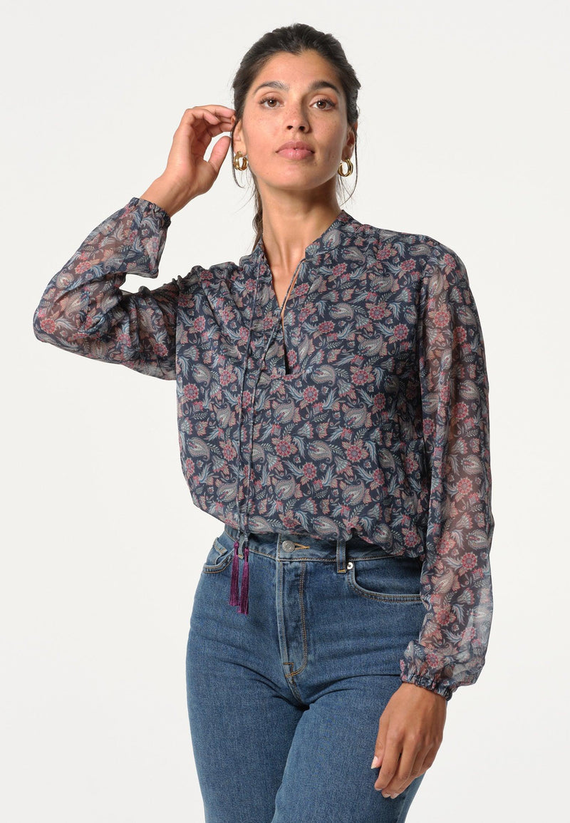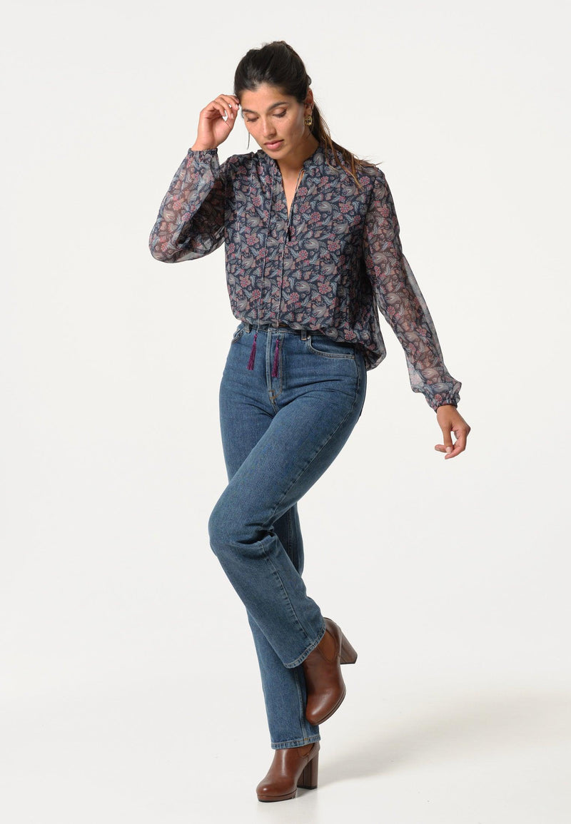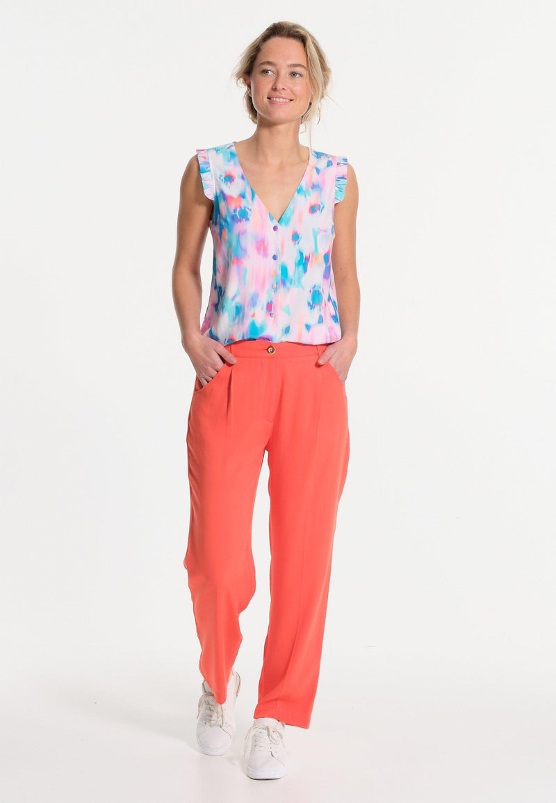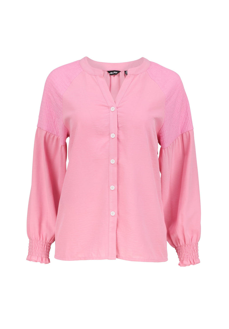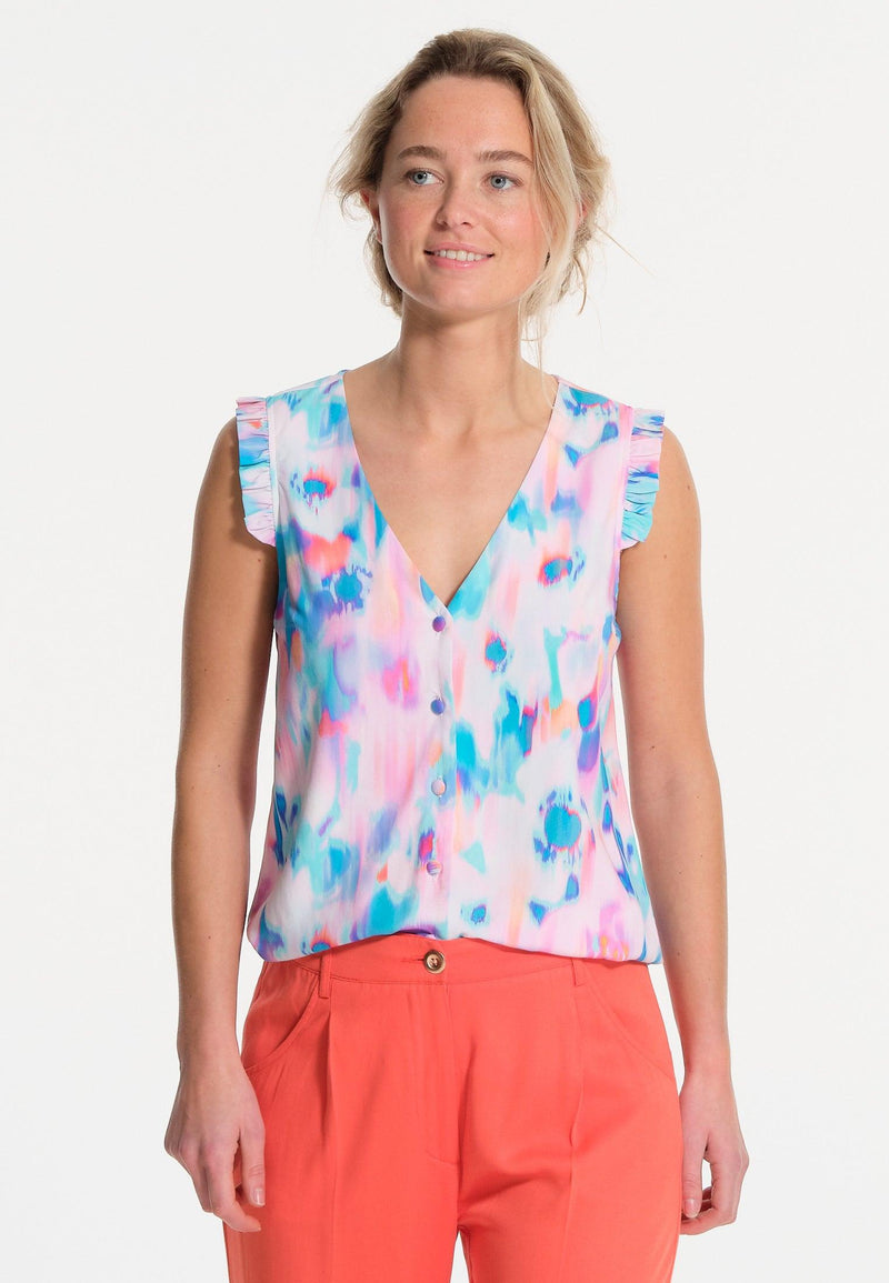 Women's fluid yellow 3/4 sleeve blouse with buttons