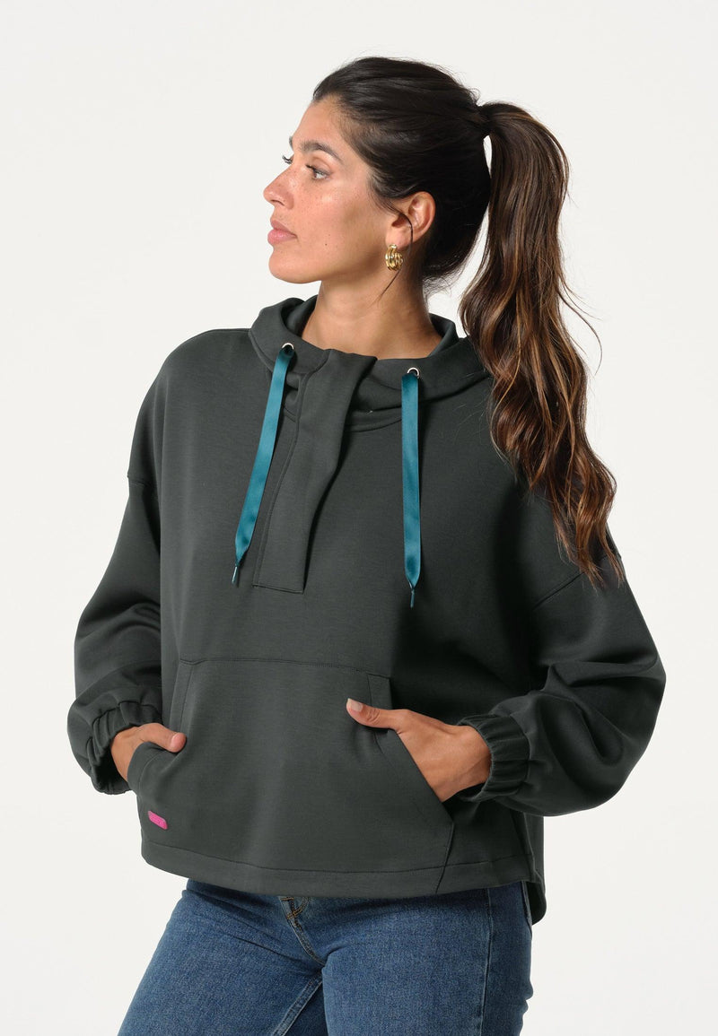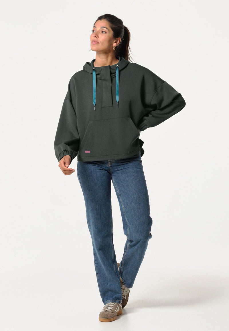 Women's green sweatshirt with hood and kangaroo pocket