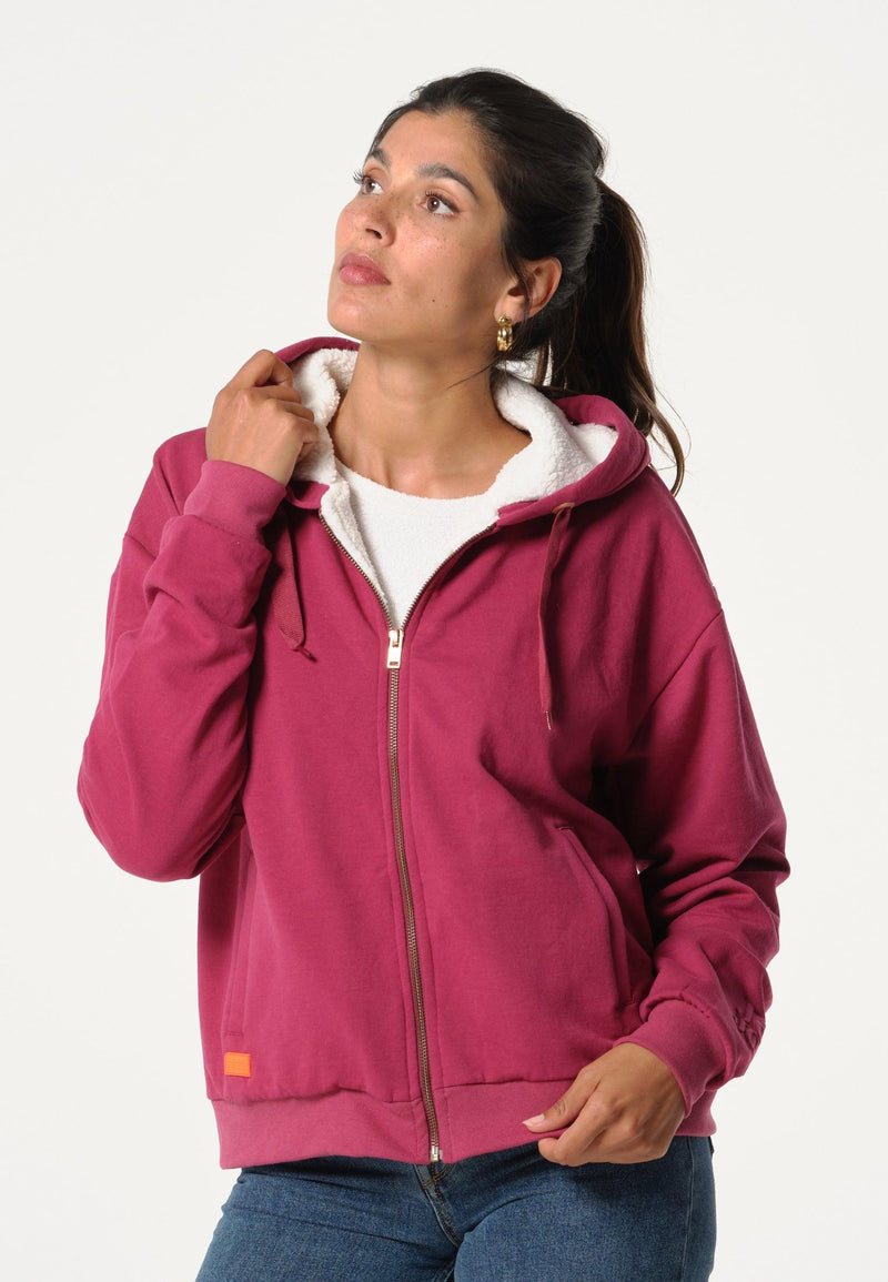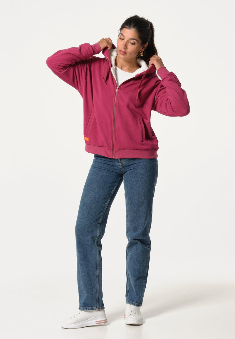 Plain fuchsia women's sweatshirt with zipped collar