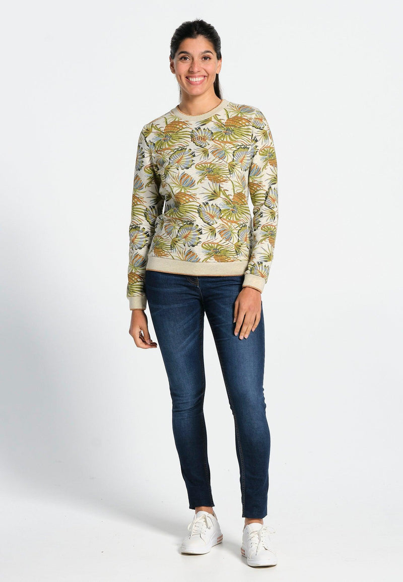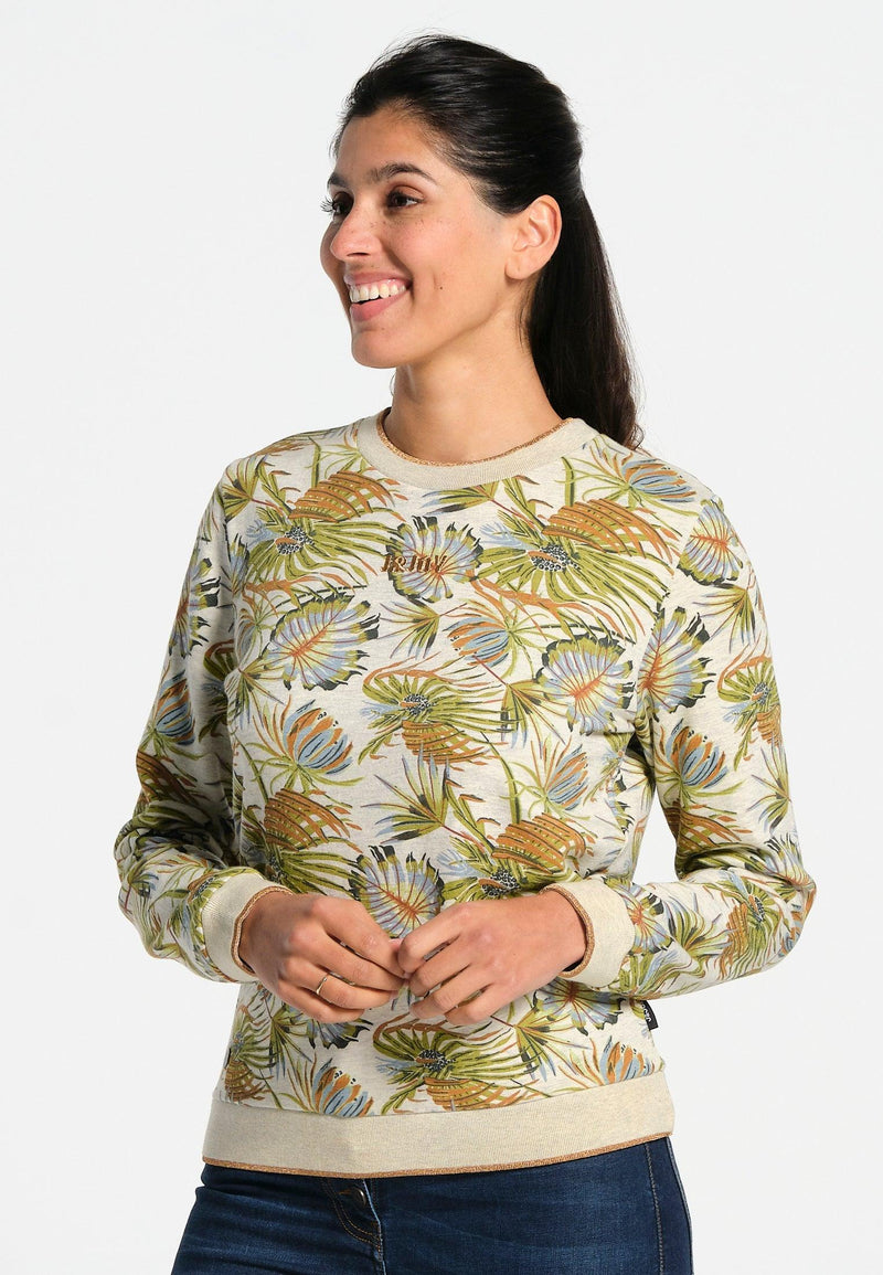 Women's printed sweatshirt, round neck, long sleeves, ribbed finishes