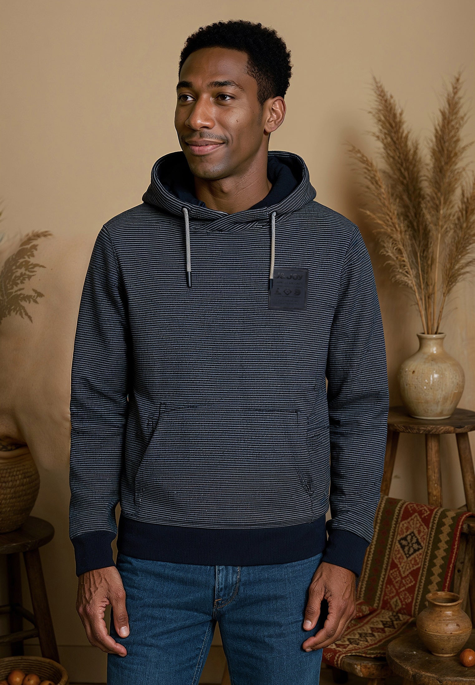 Sweatshirt homme bleu avec col montant et poche kangourou