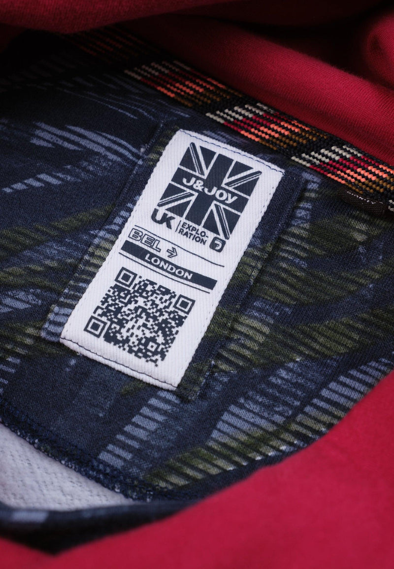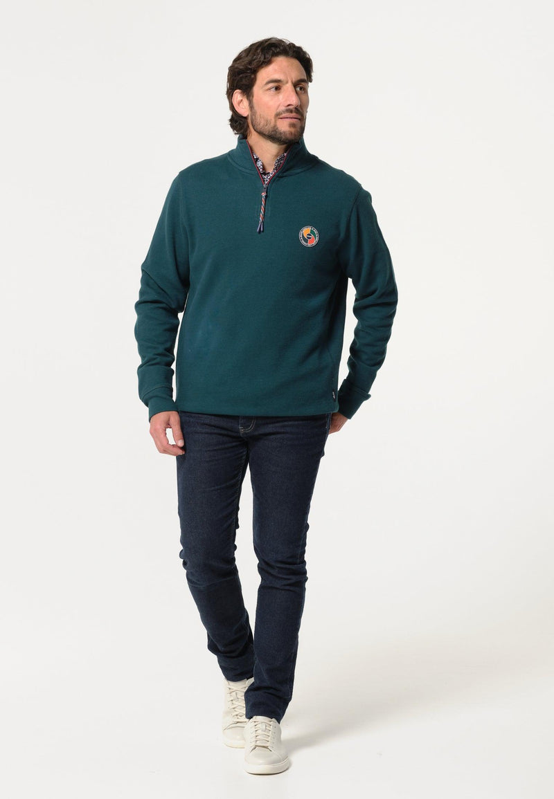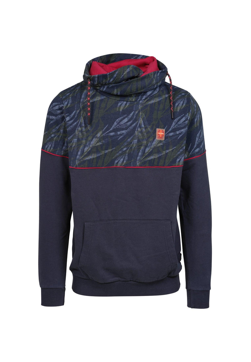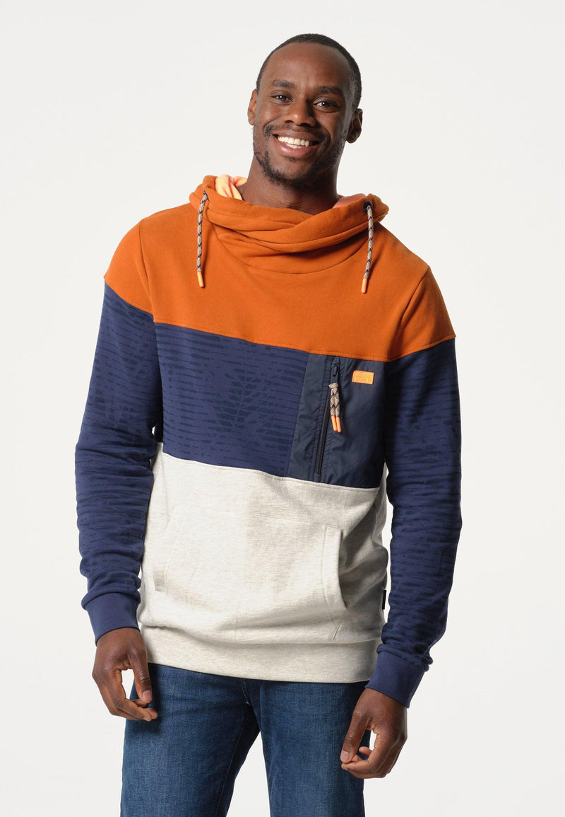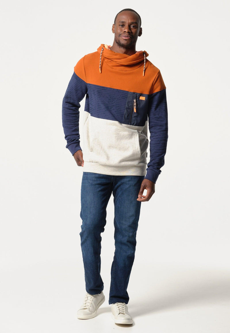 Men's tricolor sweatshirt with kangaroo pocket and high collar
