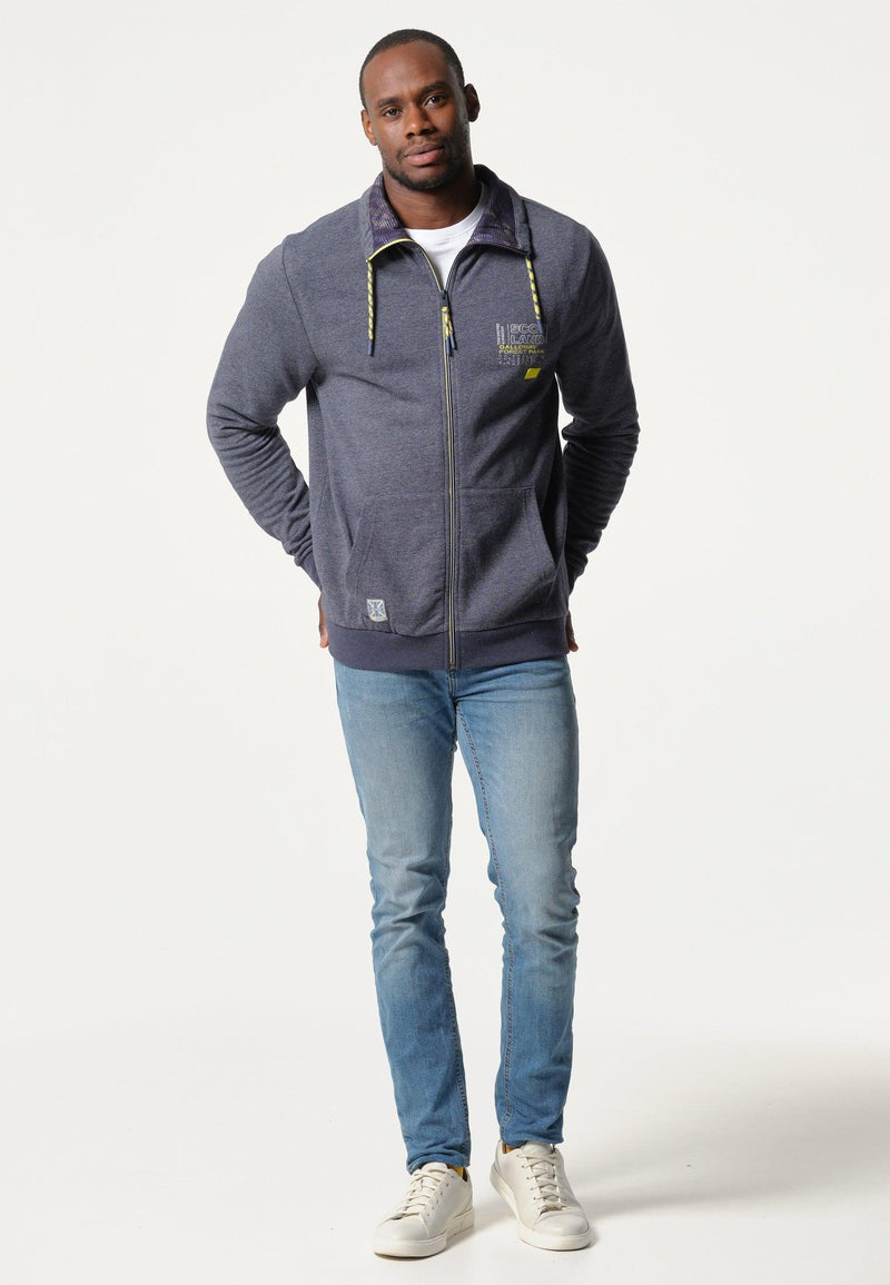 Sweatshirt homme bleu marine zippé avec capuche et intérieur doux