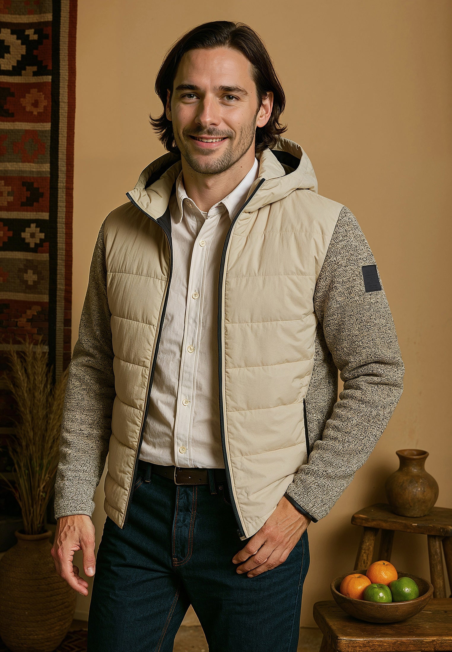 - Ouverture zippée avec finitions contrastées et capuche pratique