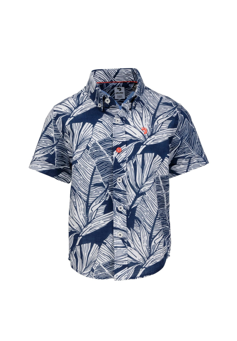 Chemise garçon manches courtes bleue et feuilles en dégradé